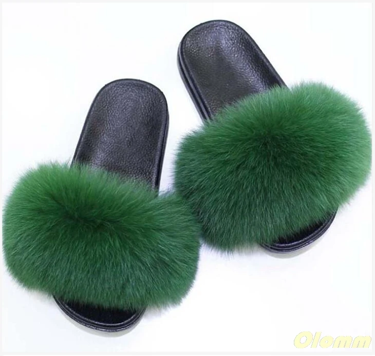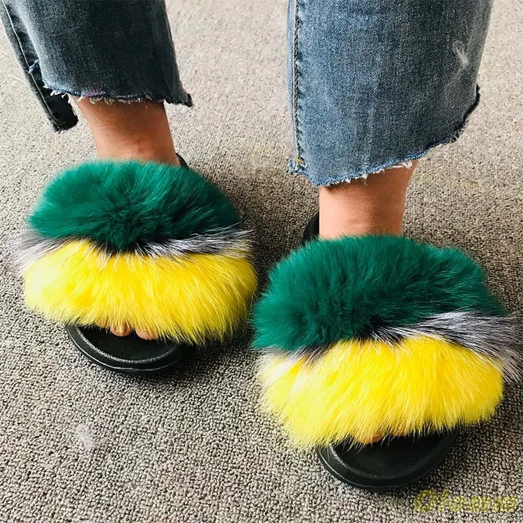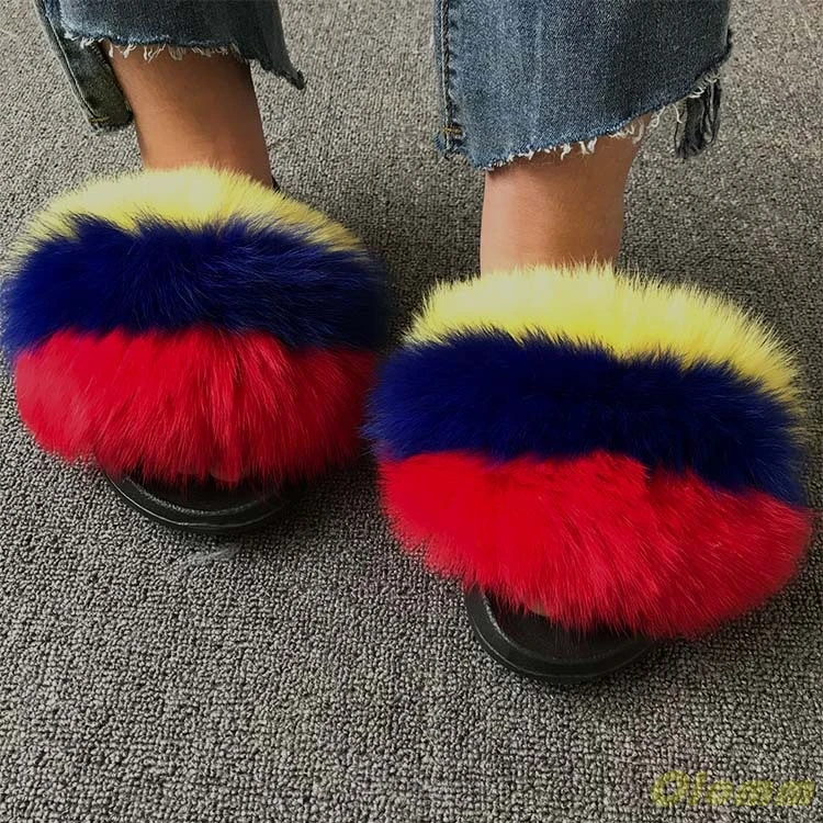 Женские летние шлепанцы с натуральным лисьим мехом; женские несколь...