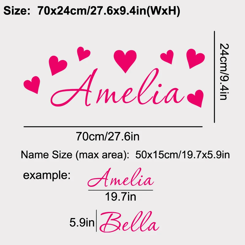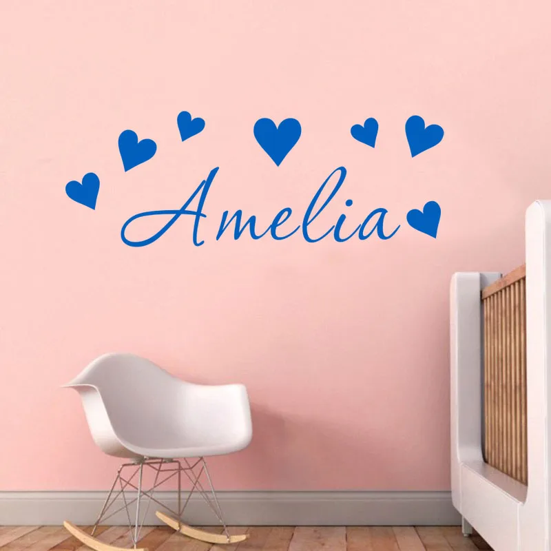 Персональное имя сердце виниловая наклейка на стену Наклейка для новорожденных декорация для девочек DIY декорации