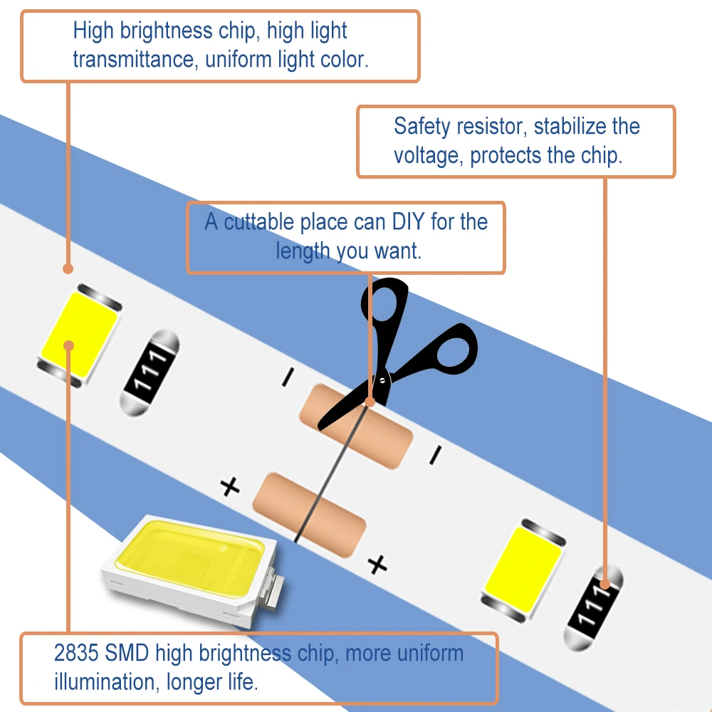 Особенности:*Гибкий светодиодный светильник-полоска, чип высокой яркости, хороший светильник, равномерный и достаточный светильник, решить проблему неравномерного освещения, сделать светильник эффект ing полон жизненной силы, отличный декоративный эффект создает комфортную атмосферу.*Управляется любыми устройствами с выходным usb-портом 5 В, такими как компьютер, настольный компьютер, ноутбук, планшет, таб, автомобильный прикуриватель. И т. д.*3M двусторонний скотч на задней части для гирлянды, может быть напрямую и быстро вставить.*Светодиодный чип высокой цветопередачи, высококачественный светодиодный чип 2835SMD, высокая цветопередача, низкий светильник, долговечный.