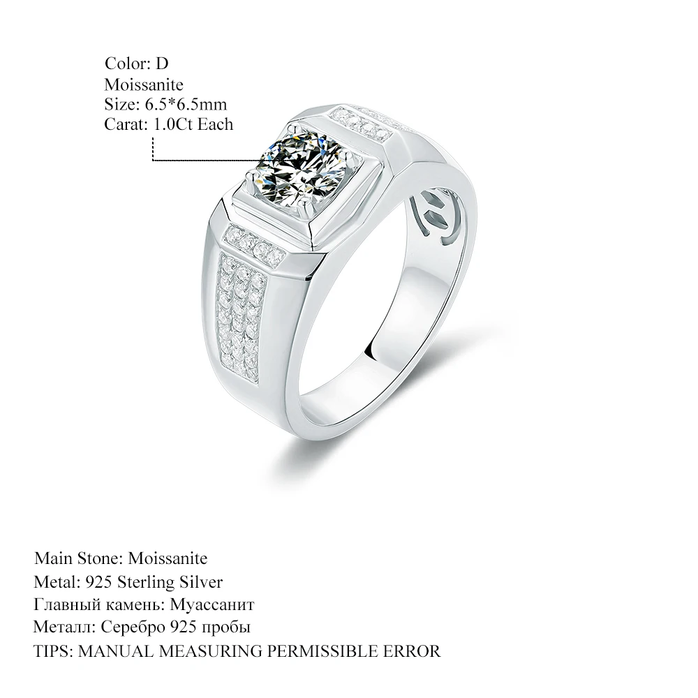 Круглые балетные кольца gemb's 1.0Ct 6,5 мм Moissanite, 925 пробы, серебряное кольцо Moissanite для мужчин, свадебные кольца с сертификатом