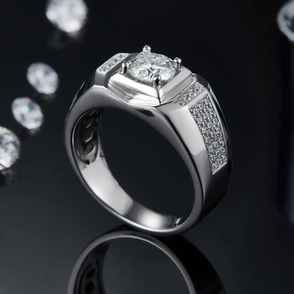 Gem балетки 925 пробы серебро Муассанит кольцо для Для мужчин сваде...