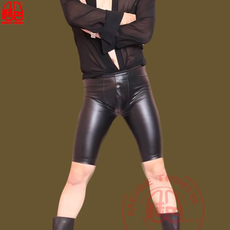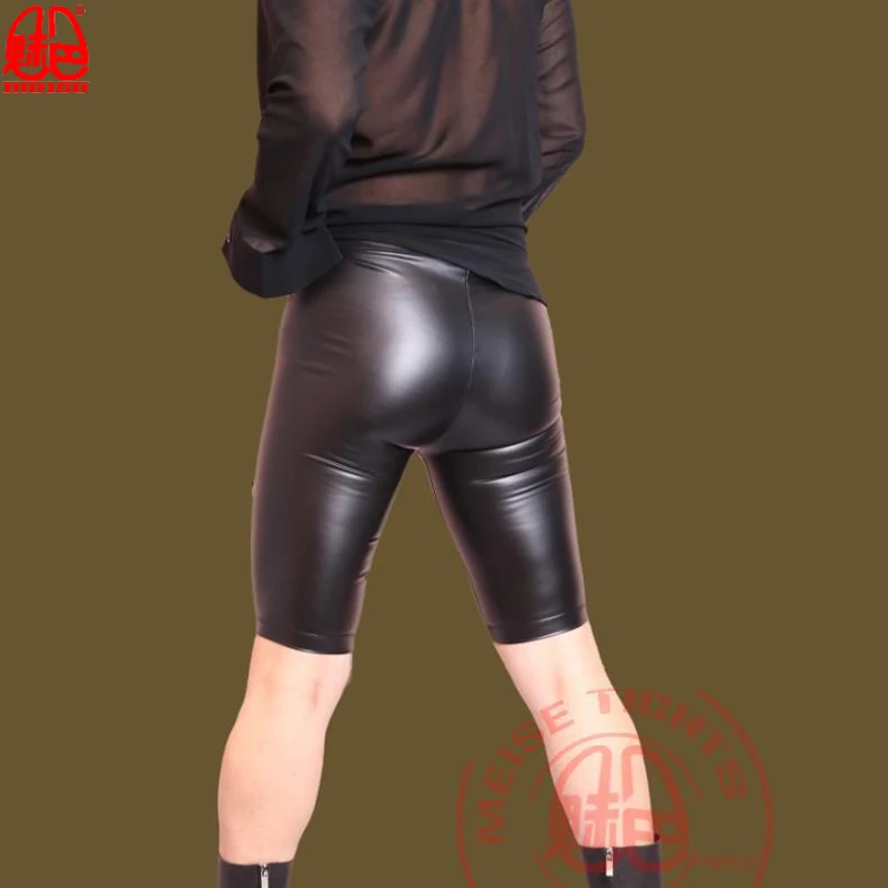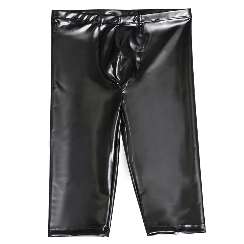 Мужские повседневные обтягивающие шорты из искусственной кожи, облегающие штаны средней длины, обтягивающие водонепроницаемые крутые модные пиратские шорты для бега, бриджи с низкой талией