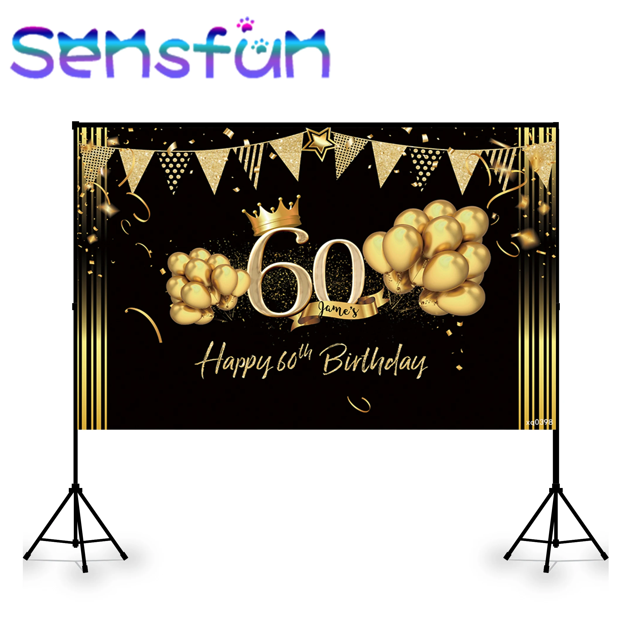 Xq0398 черно-Золотой Фон для фотосъемки с воздушными шарами на заказ украшение для вечеринки в честь 60-го дня рождения баннер фон для фотосъемки фотобудка