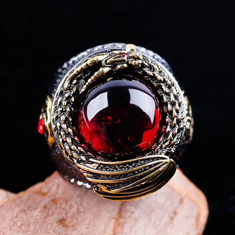 Кольцо мужское из нержавеющей стали с красным кристаллом, винтажное...