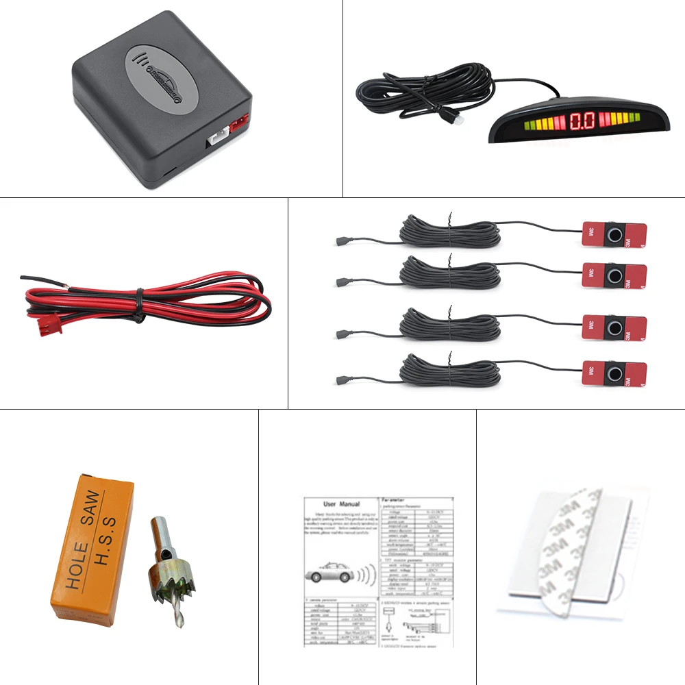 Особенности:4 сенсорная система, двойной процессор и расширенный набор микросхем для расширенного покрытия и обнаружения (0-2,5 м).С цифровым цветным светодиодным дисплеем (номер и свет).Помогает избежать опасных и дорогостоящих столкновений.Помогает обеспечить повышенную безопасность для пассажиров, пешеходов и членов семьи, которые находятся вокруг движущегося транспортного средства.Обнаружение маленьких детей и низких стен.Защита от замерзания и дождя.Просты в установке.В комплект входит Пильная головка.Технические характеристики:Напряжение питания: 12 В постоянного токаДиапазон работы: 10,5 V - 16V DCСкорость тока: 100mA - 300mAРасстояние обнаружения: 0,3-2,0 мУльтразвуковая частота: 40 кГцРабочая температура управления: -30 - 80 градусов ЦельсияРабочая температура дисплея: -20 - 70 градусов ЦельсияРазмер светодиодного дисплея: 9*1,5 смВес дисплея: 88 гРазмер основного блока управления: 10,5*6*2 смВес основного блока управления: 63 гКомплектация: (Без розничной коробки, спасибо за Ваше понимание! Спасибо много!)1 * Главный блок управления1 * Светодиодный Индикатор дисплея4 * Датчики парковки с линией 2,5 м1 * кольцевая пила1 * кабель питания2 * двухсторонняя наклейка