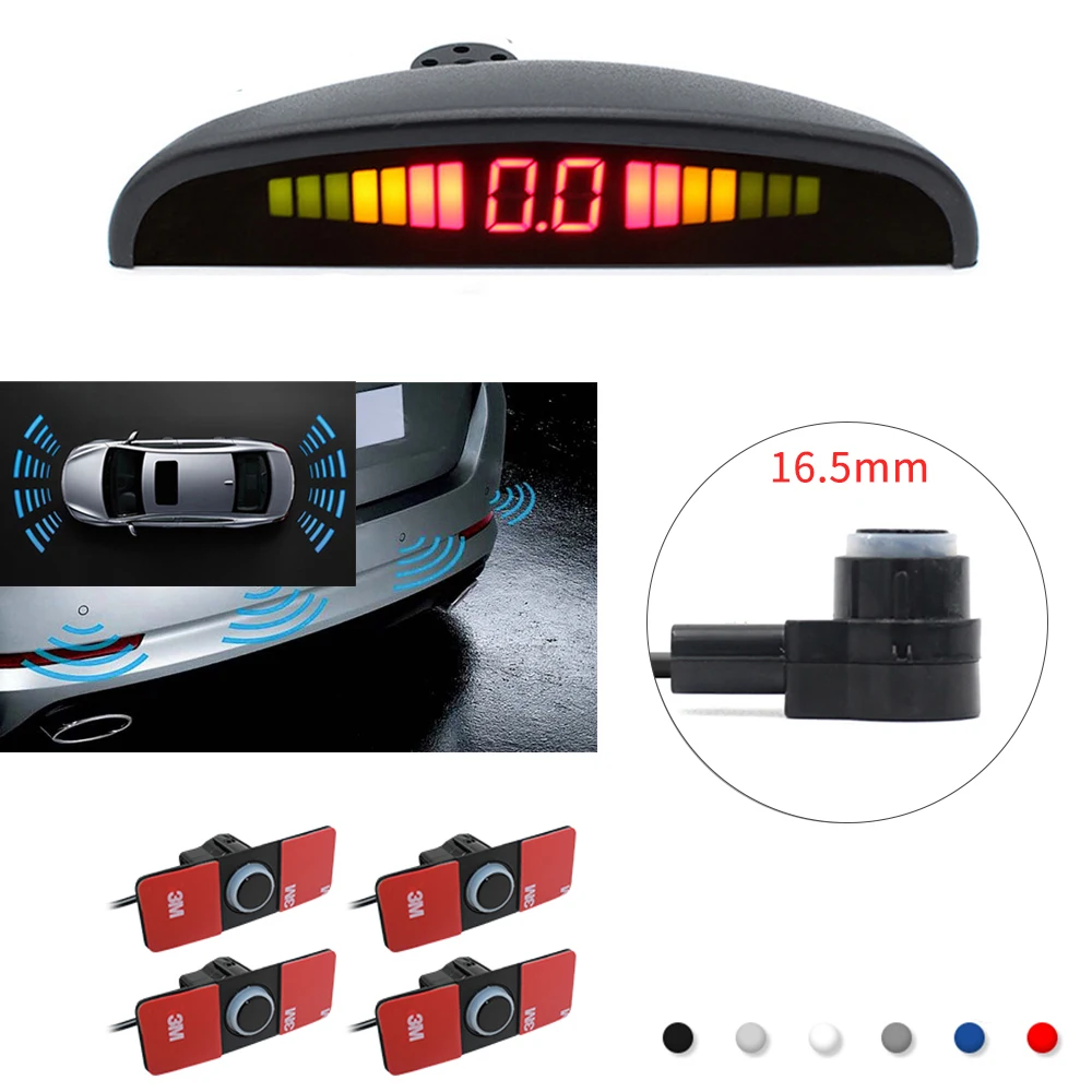Автомобильный комплект светодиодных датчиков парковки 16,5 мм, 4 датчика с подсветкой, дисплей заднего хода, радар-монитор 9-16 В, бесплатная доставка