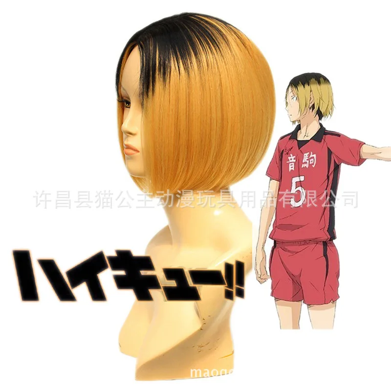 Высокое качество Аниме Haikyuu! Kenma Kozume косплей парик с короткими черными желтыми градиентными волосами для костюма для Хэллоуина