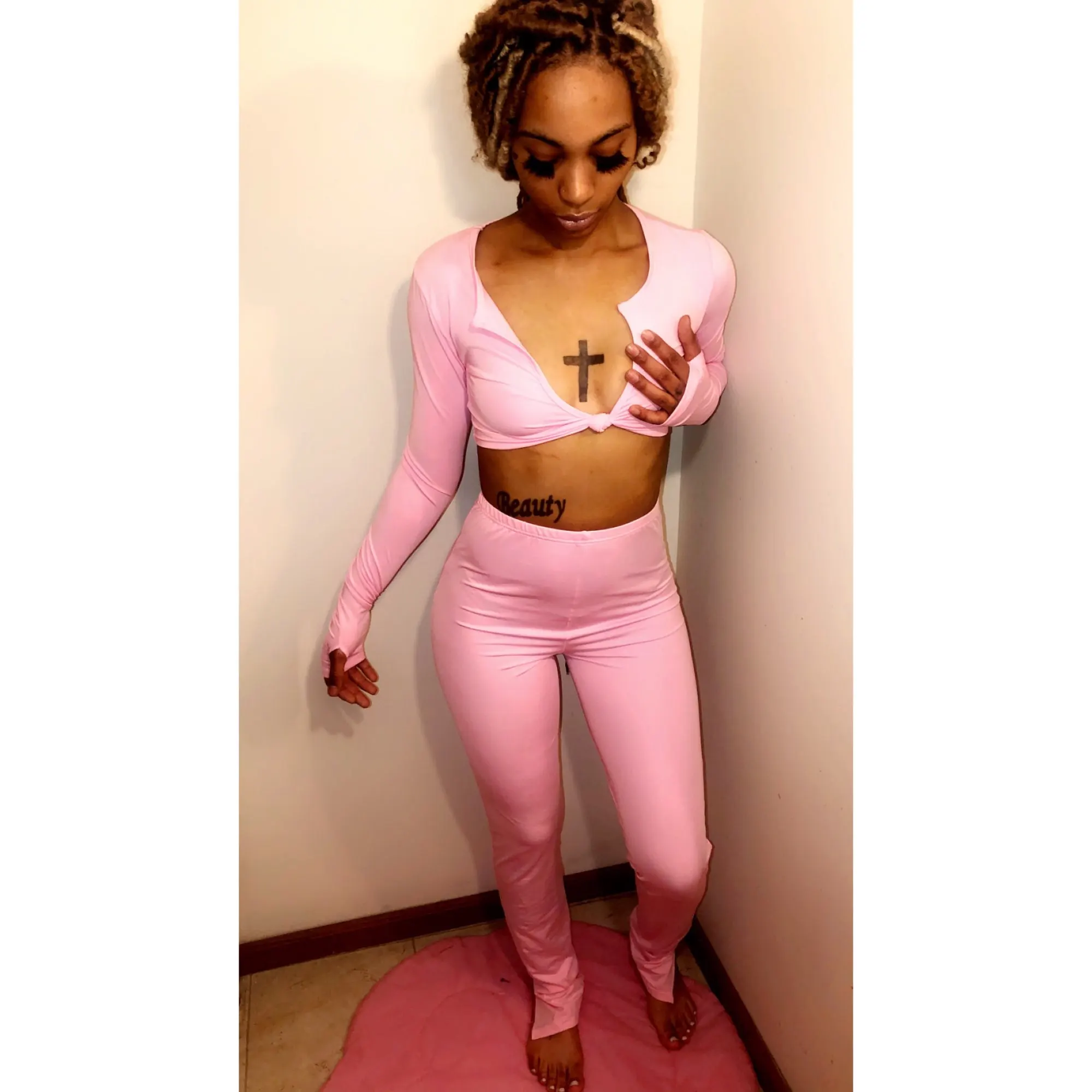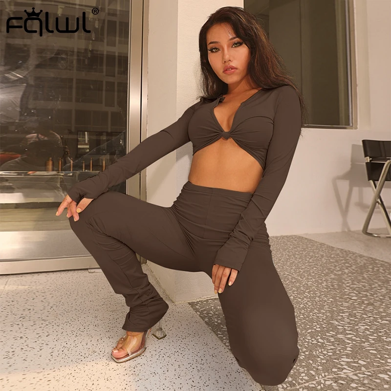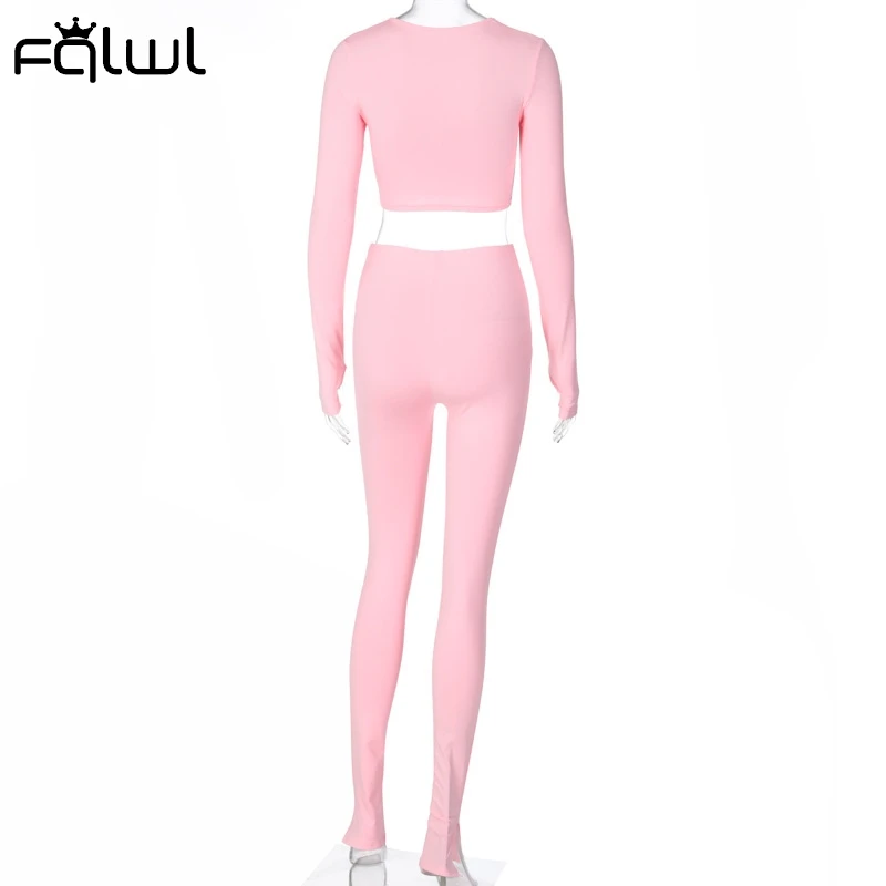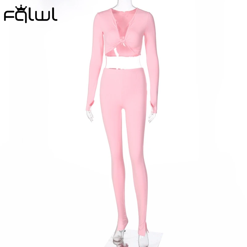 FQLWL повседневный летний комплект из 2 предметов, женский розовый наряд, короткий топ с длинным рукавом, леггинсы, женские спортивные костюмы для бега
