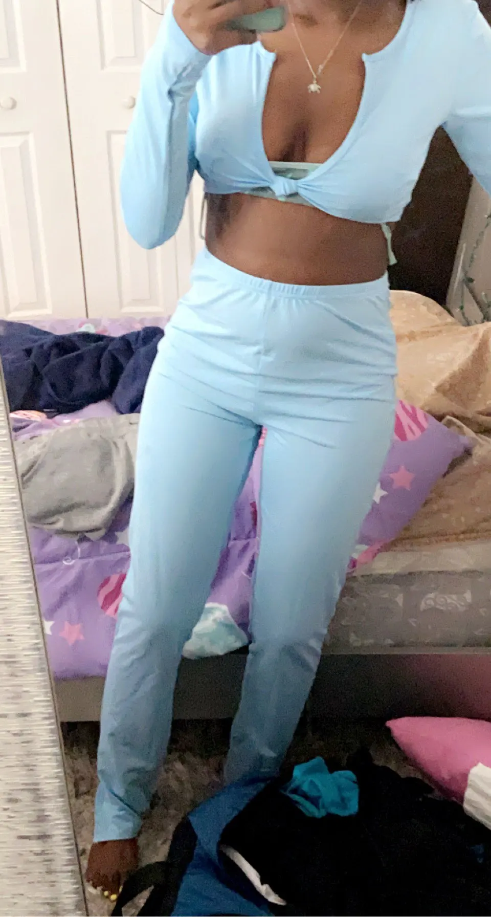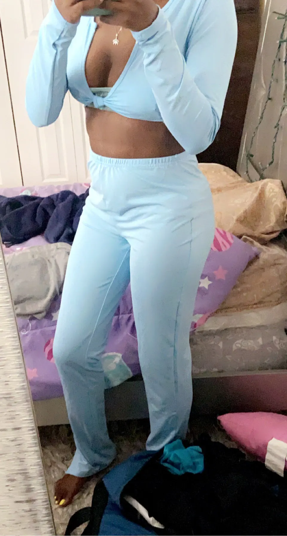 Я в США, он пришел ко мне через 10 дней, доставка была быстрой и картинка очень точная! Я гарантирую, что это не афера. Я 5'2 и полный. Я ношу 34DD Топ подходит как бюстгальтер. Брюки очень просторные. Покрывает большую часть моего желудка. Я рекомендую, если ваш размер 5'4 или короче, без груди и ягодиц, получить размер меньше!