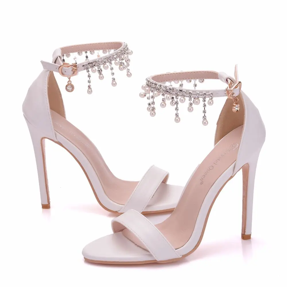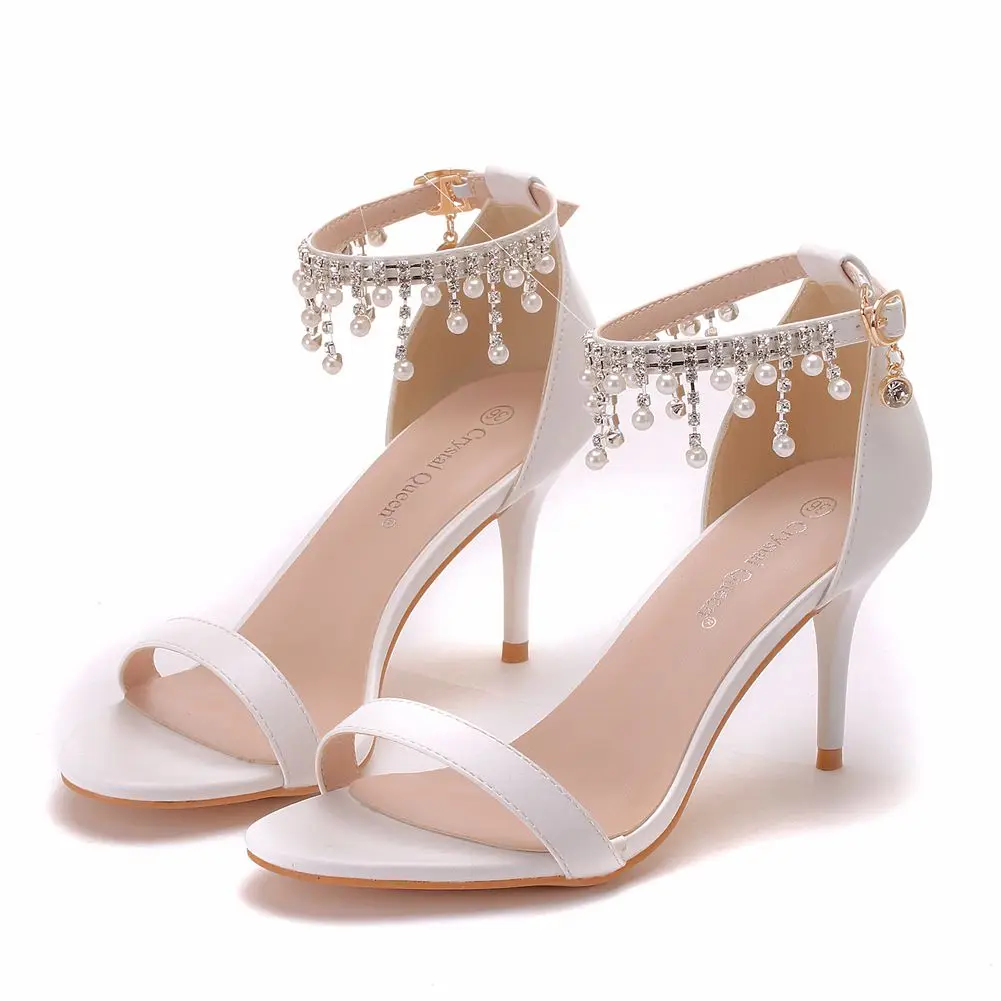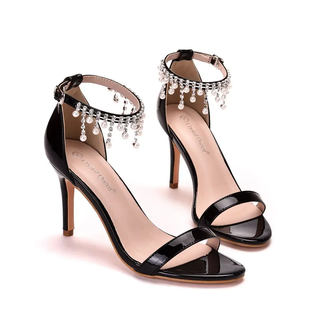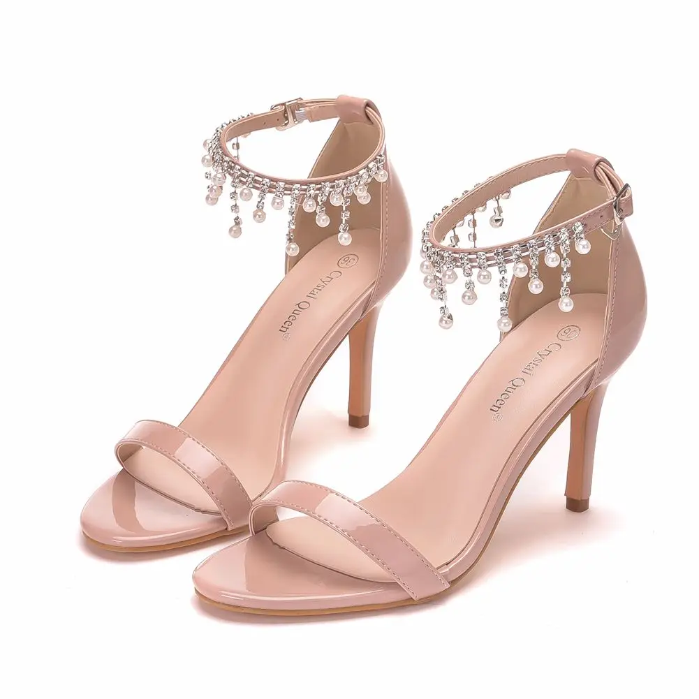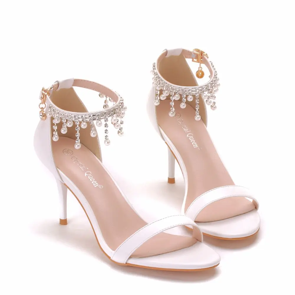 Босоножки женские на высоком каблуке, хрустальные модные сандалии с жемчугом, с открытым носком, для вечевечерние, для лета