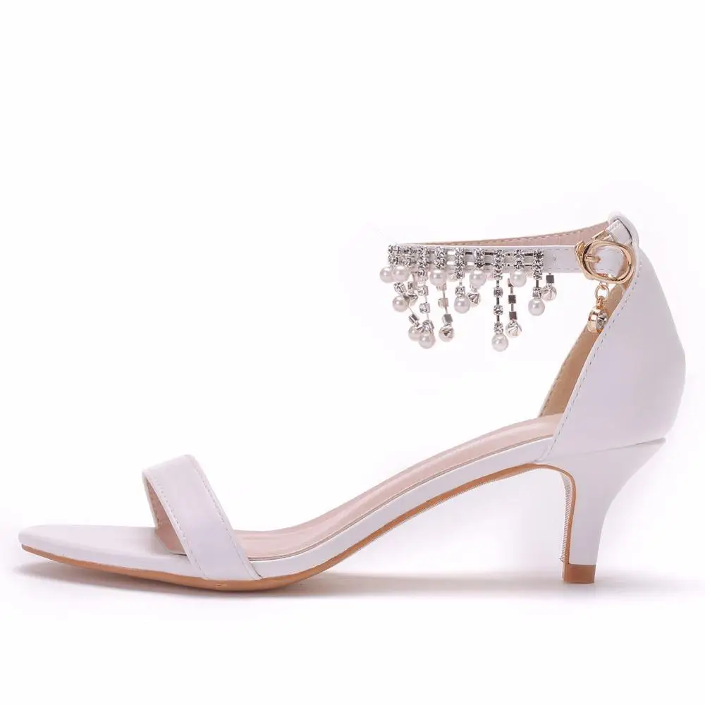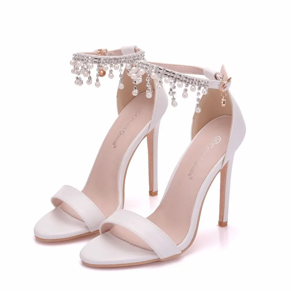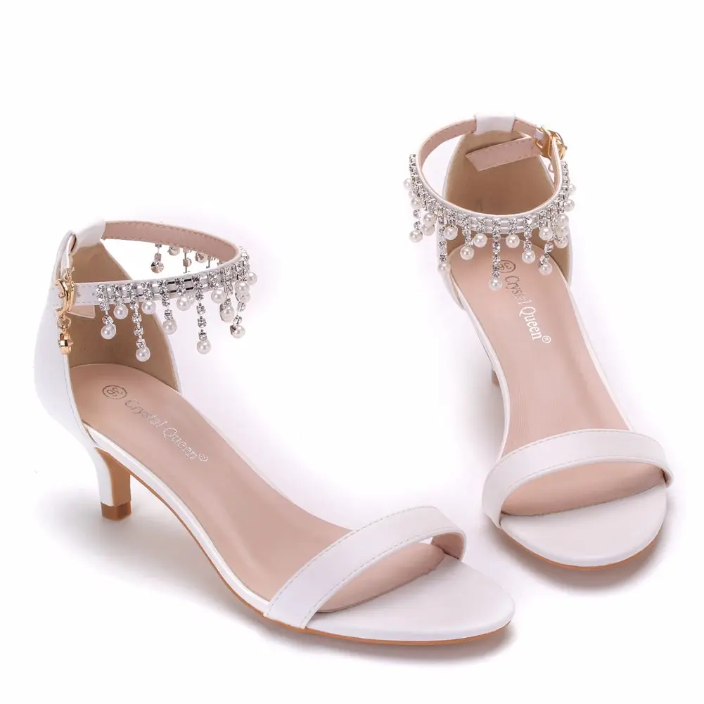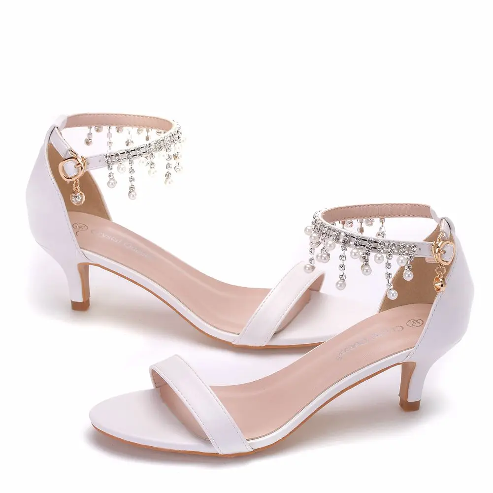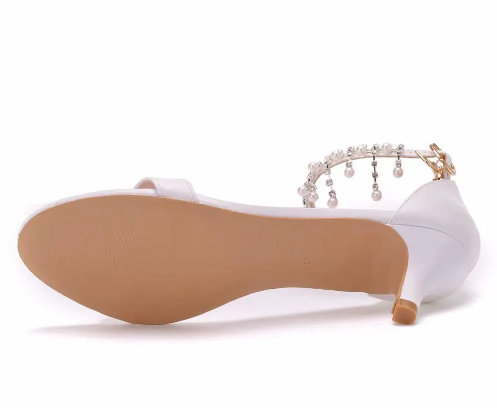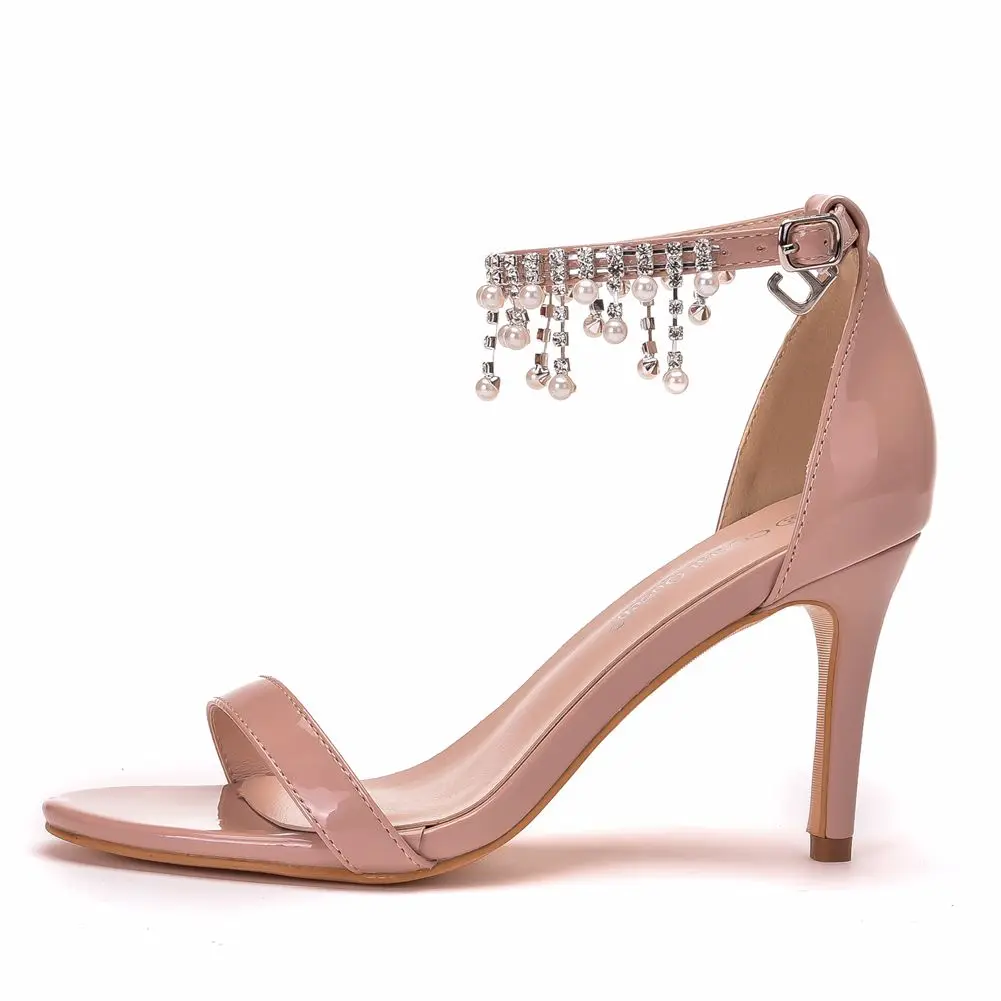 Босоножки женские на высоком каблуке, хрустальные модные сандалии с жемчугом, с открытым носком, для вечевечерние, для лета