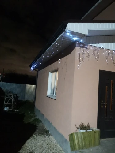 Фиолетовая гирлянда очень красивая. Есть несколько режимов работы. Надёжно упакована и очень быстро пришла. Припреодолении светового порога сама включается и выключается. Ждём дачного сезона и устраиваем романтик на участке !