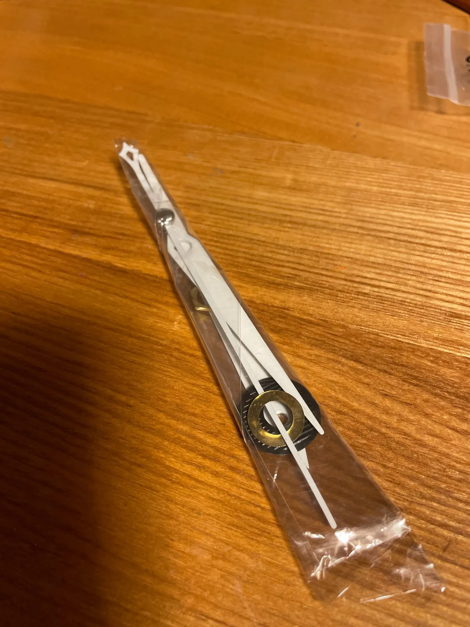 стрелки пришли за дней 40. механизм и вправду бесшумный. секундная стрелка была чуть погнута, но это легко исправить вручную. красный цвет как и надо красный. сверху стрелок есть плёнка, которую нужно будет снять. работает от одной батарейки формата ААА. очень довольна заказом и приобретением. продавец молодец