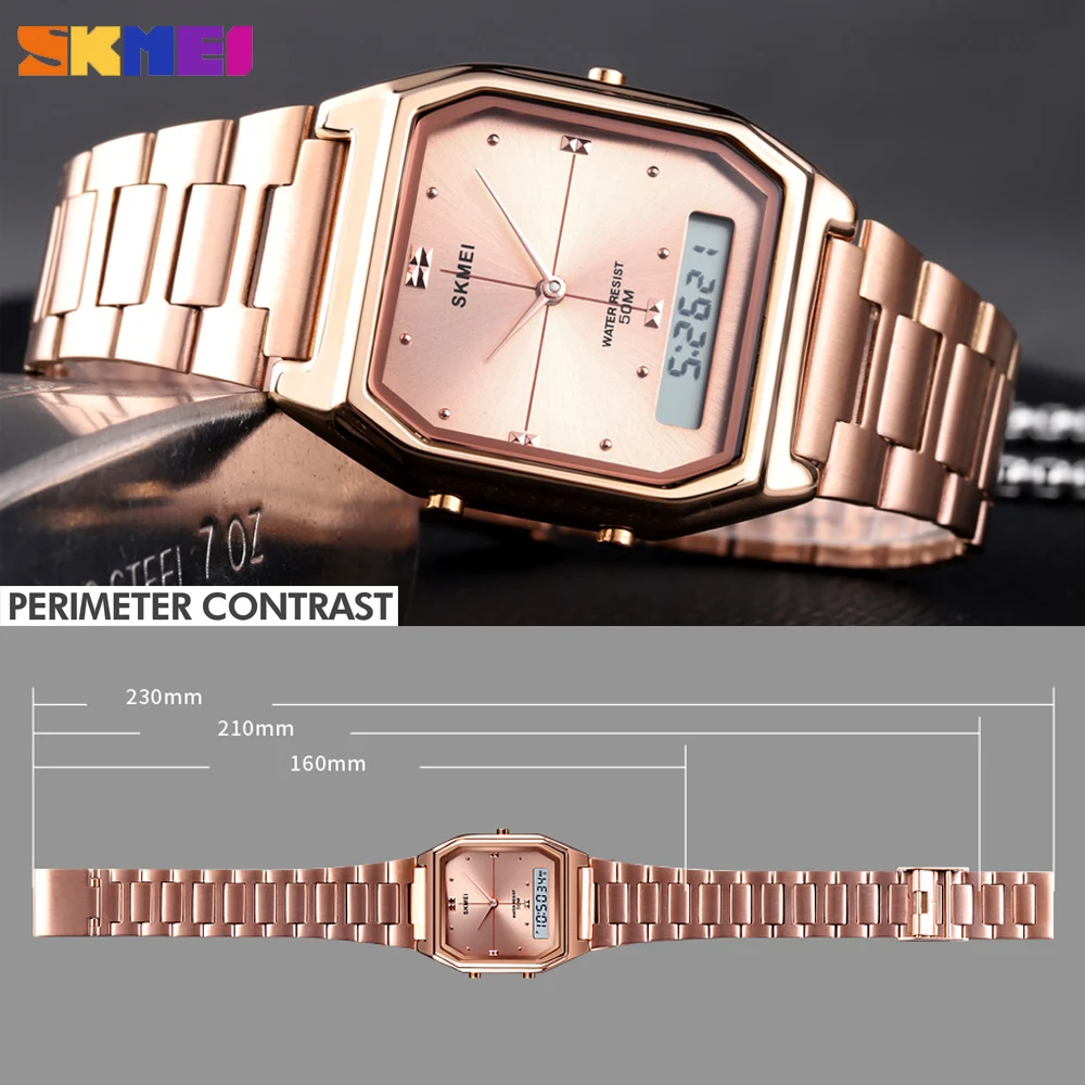 SKMEI мужские и женские цифровые часы электронные золотые кварцевые часы наручные водонепроницаемые женские часы из нержавеющей стали relogio feminino