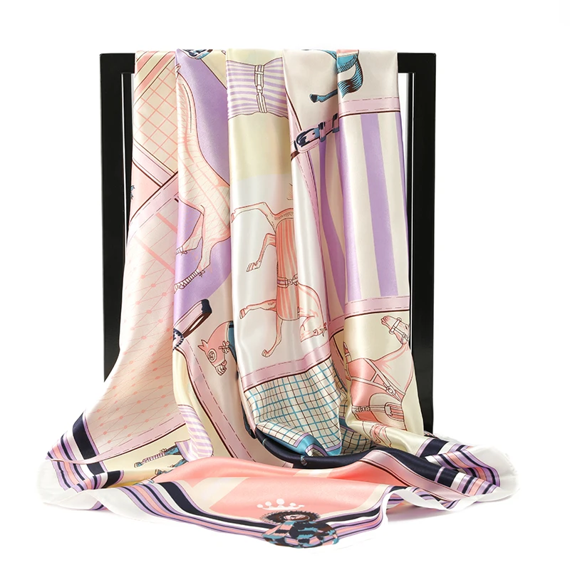 Шарф женский Шелковый, модный квадратный головной платок, атласный платок, бандана, большой размер 90 х90 см, 2021