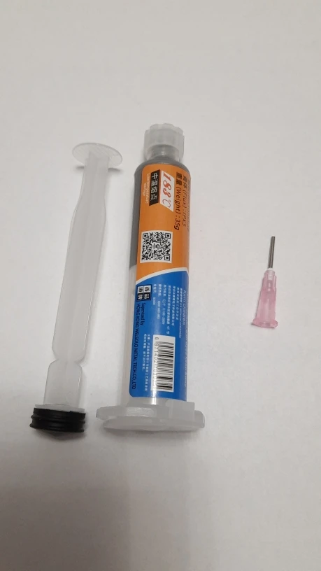 Заказ без промедления обработали и отправили, доставка была довольно длительной, больше полутора месяцев, товар пришел не поврежденным. Хорошая паяльная паста, добротно показала себя на деле, при помощи нее качество соединяемых радиокомпонентов к печатной плате визуально кажется как заводского уровня, равномерно покрывает выводы и имеет блеск. Описанию соответствует. Рекомендую этого продавца и его товар. Пять звёзд по всем пунктам