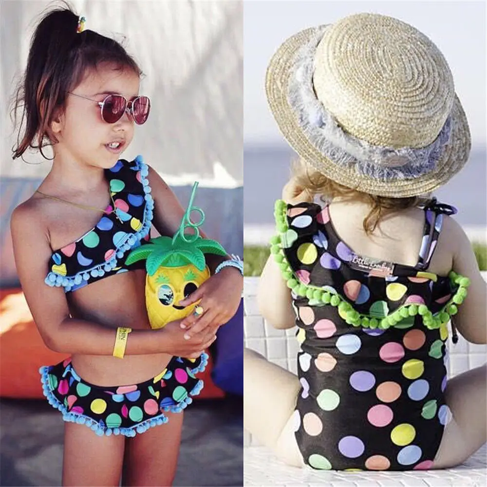 Летний купальник для девочек, комплект бикини в горошек с оборками,...