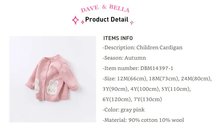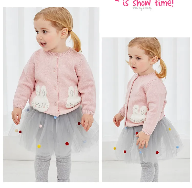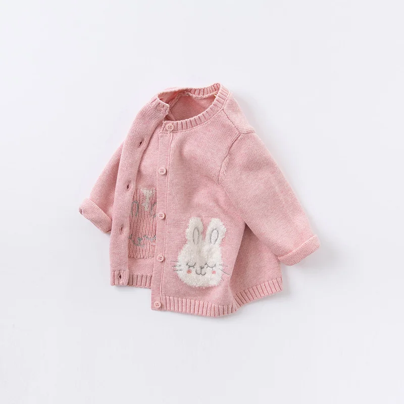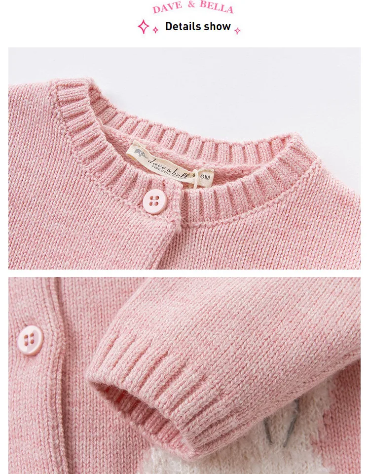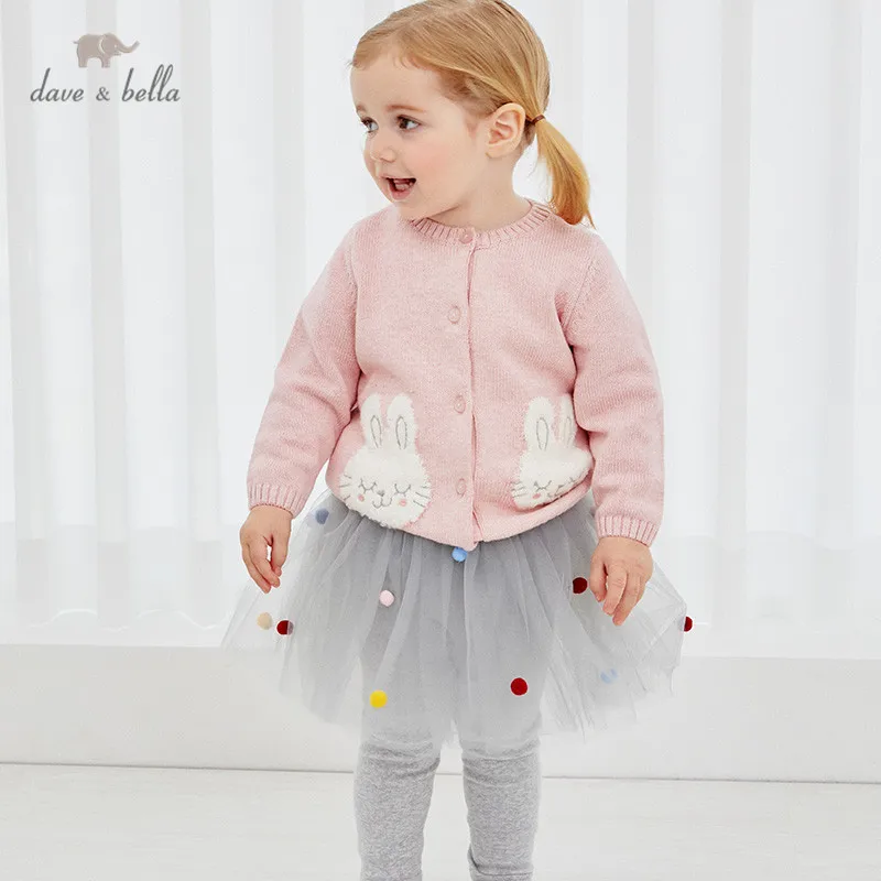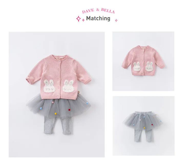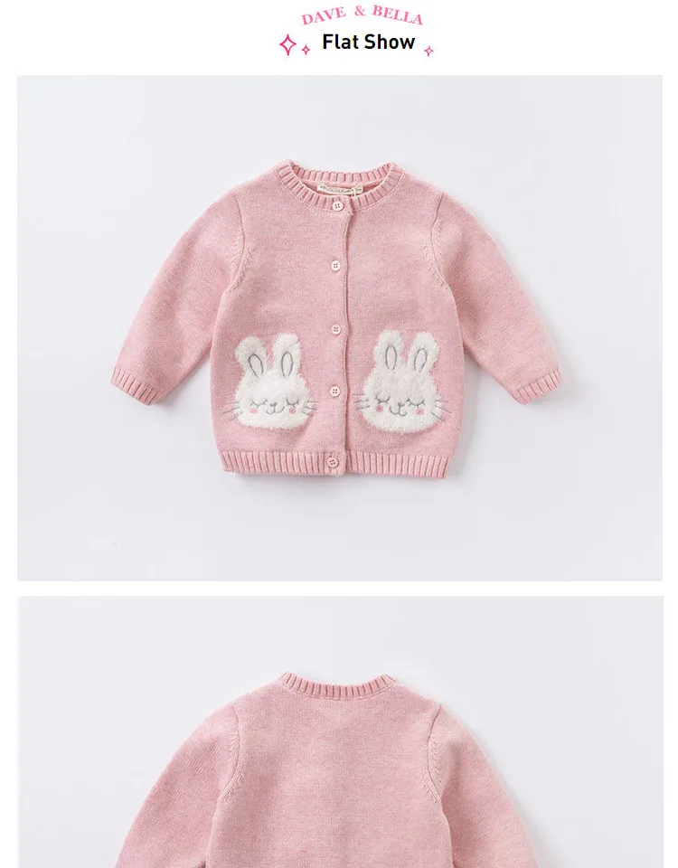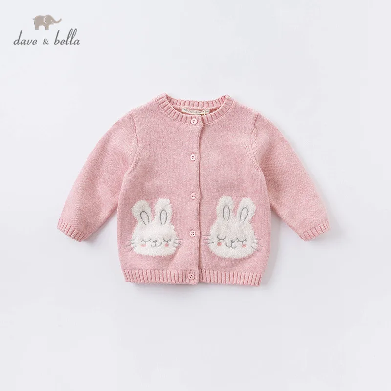 Осенний вязаный свитер dave bella для маленьких девочек, DBM14397-1, с героями мультфильмов, для малышей, кардиган из меха кролика