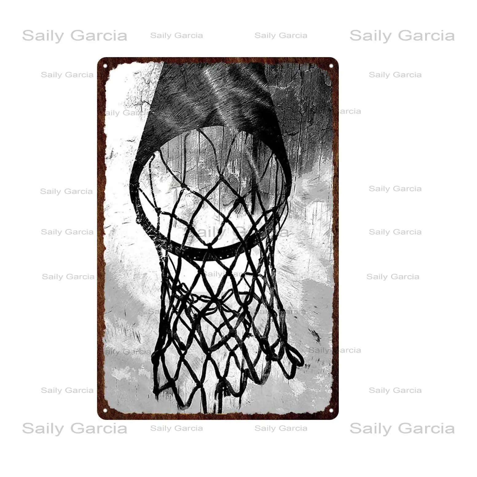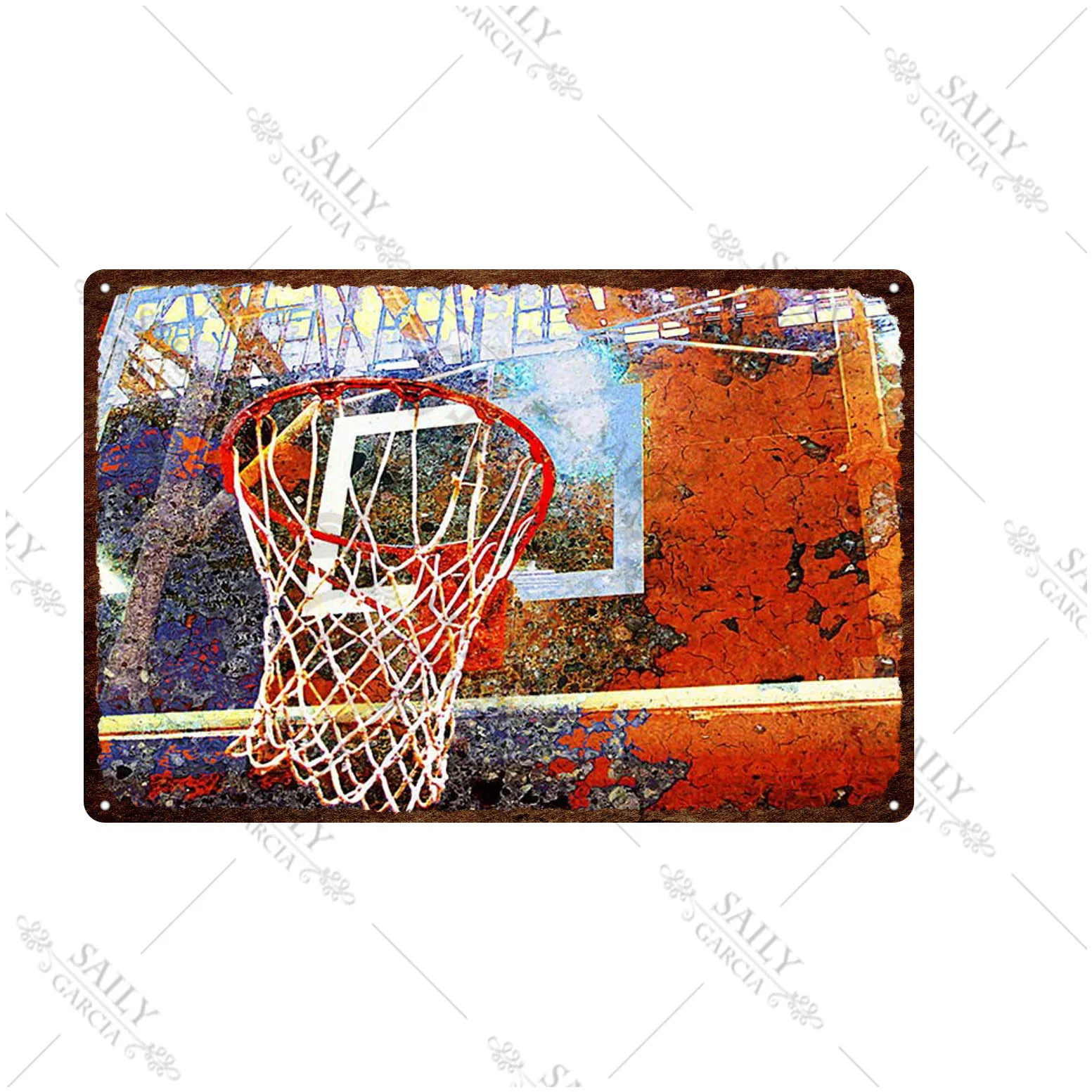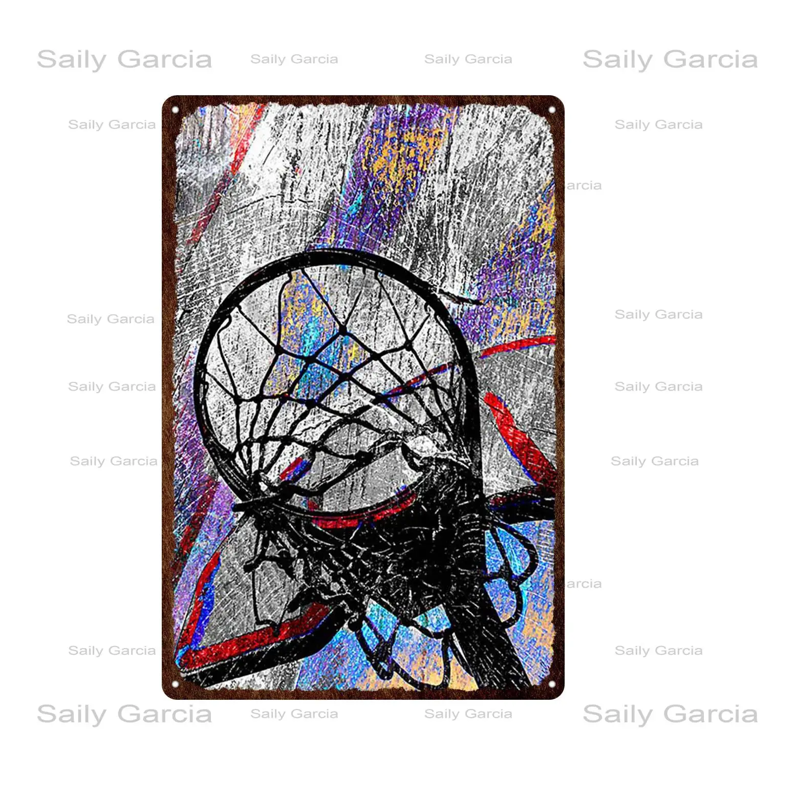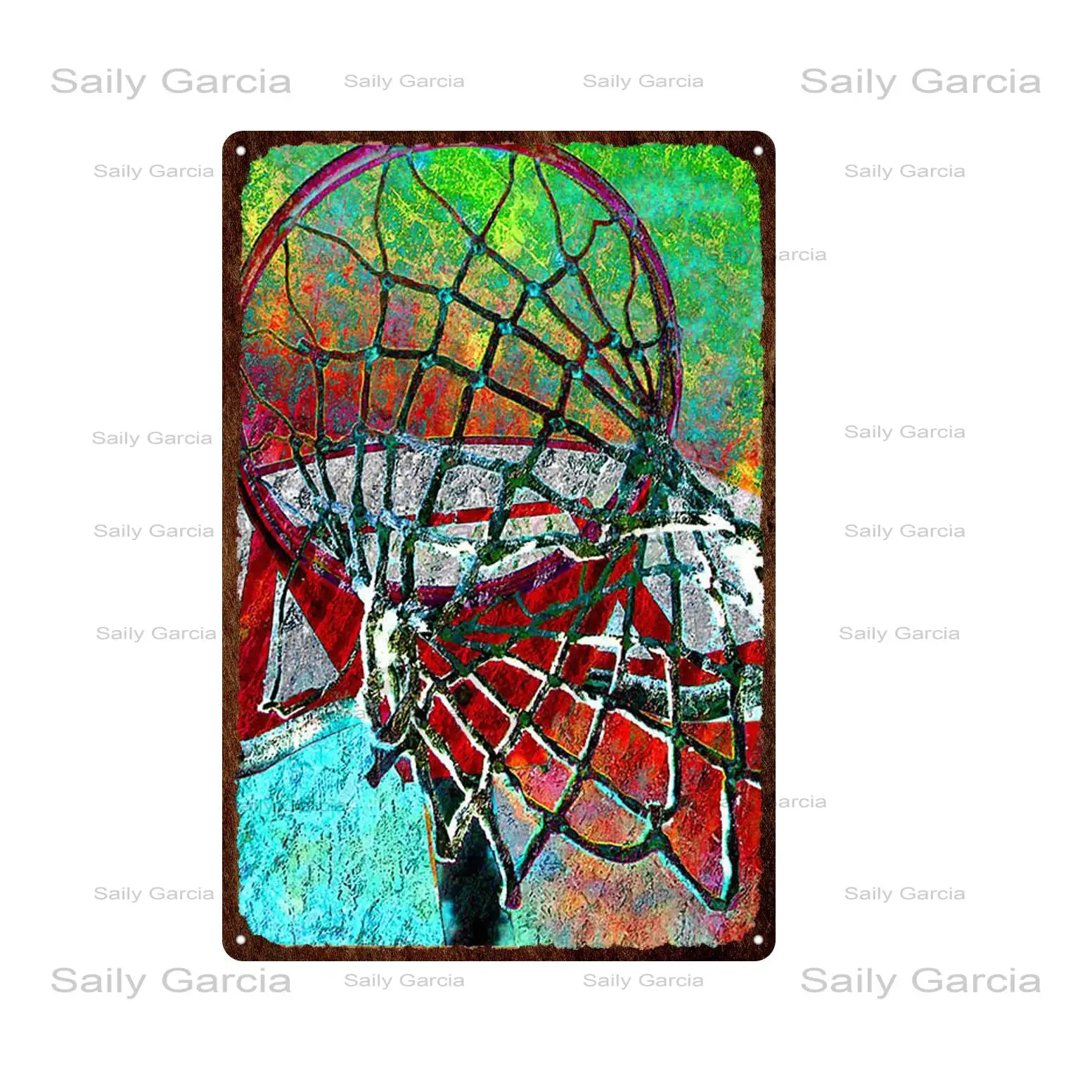 Баскетбольный металлический знак, красочный граффити, художественный постер, печатный на металле, винтажное настенное искусство, украшение для дома, металлическая пластина, спортивный стиль, олово
