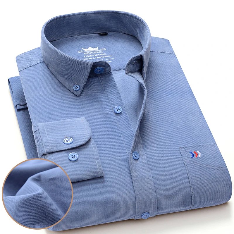 Рубашка мужская Вельветовая с длинным рукавом, Повседневная теплая утепленная рубашка из чистого хлопка, размер Regular fit, коричневый, синий, красный цвета, зима 5XL