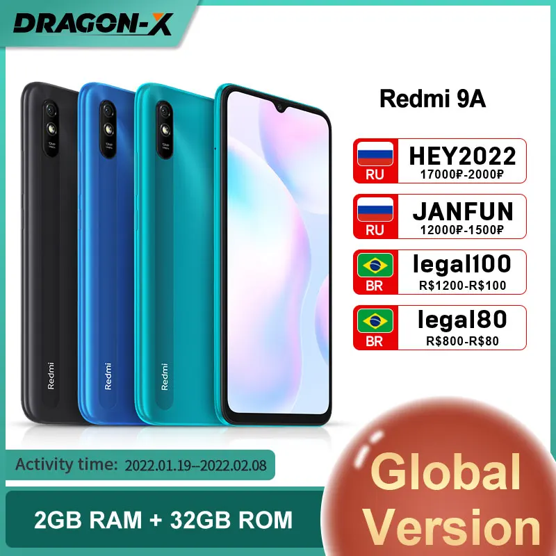 Глобальная версия смартфона Xiaomi Redmi 9A мобильный телефон 2 ГБ 32 ГБ MTK Helio G25 Восьмиядерный 6,53 "5000 мАч 13MP камера заднего вида