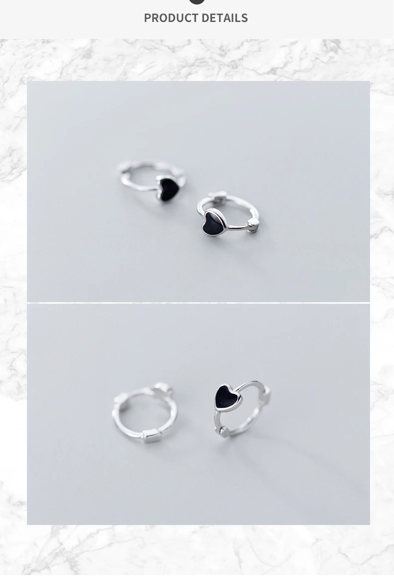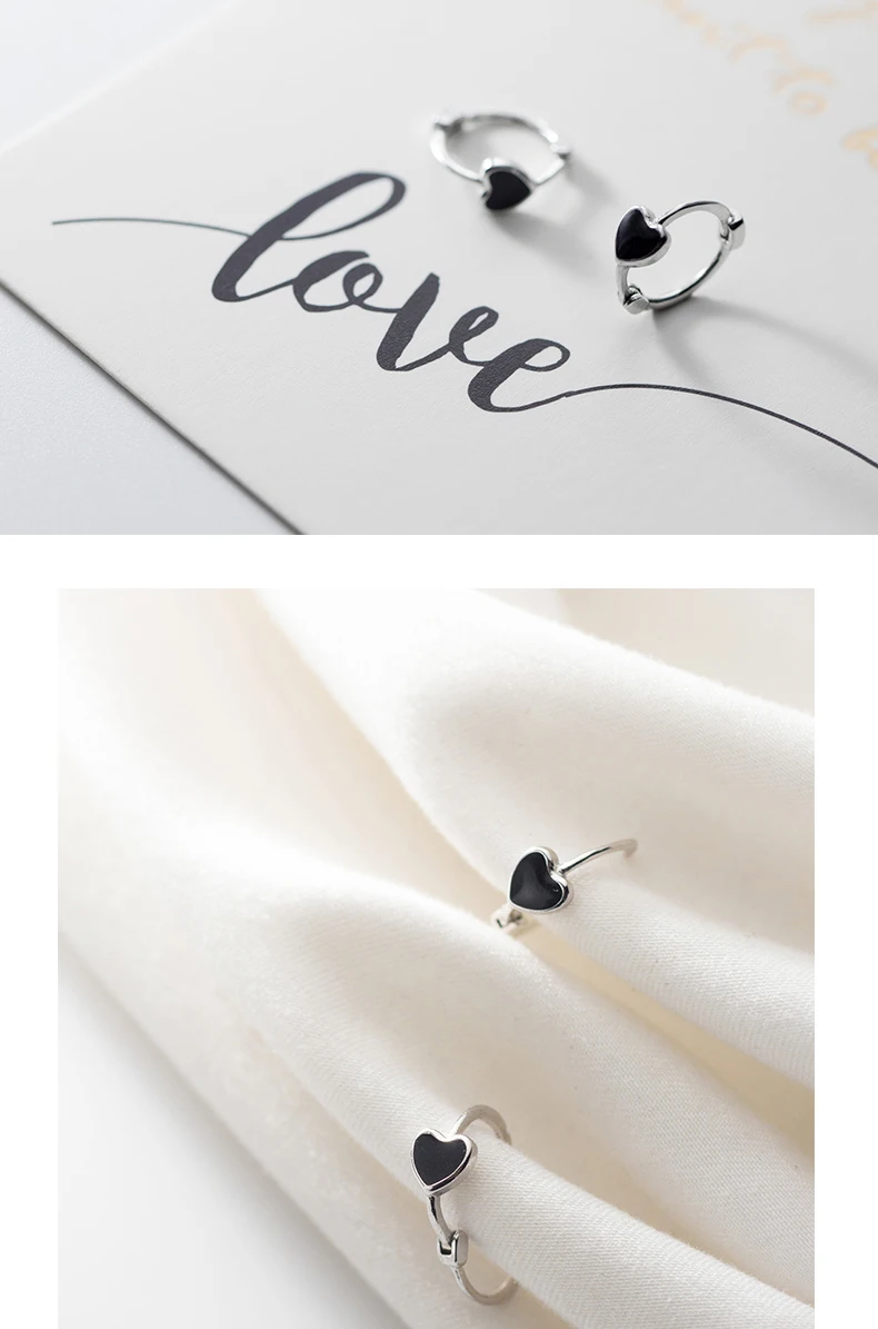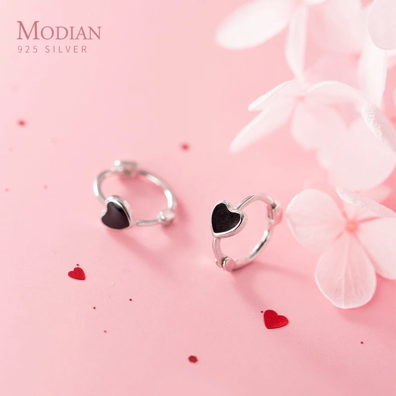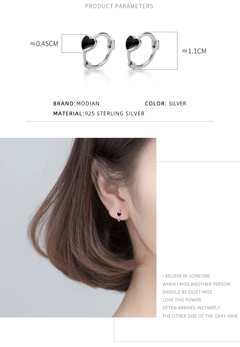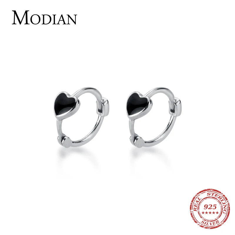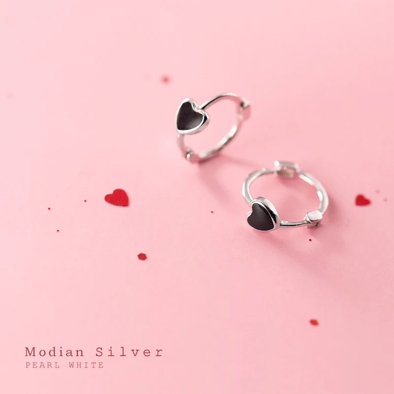 Женские классические серьги-кольца Modian, Изящные Ювелирные украшения в Корейском стиле из стерлингового серебра 925 пробы с черными сердечками