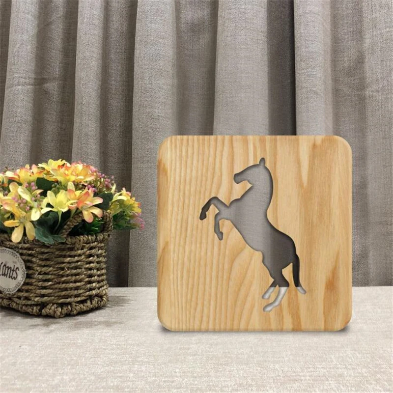 2021 деревянный ночной Светильник животных скачущий конь лампа USB светодиодный настольный светильник s деревянный детский ночной Светильник для детской комнаты украшения светодиодный