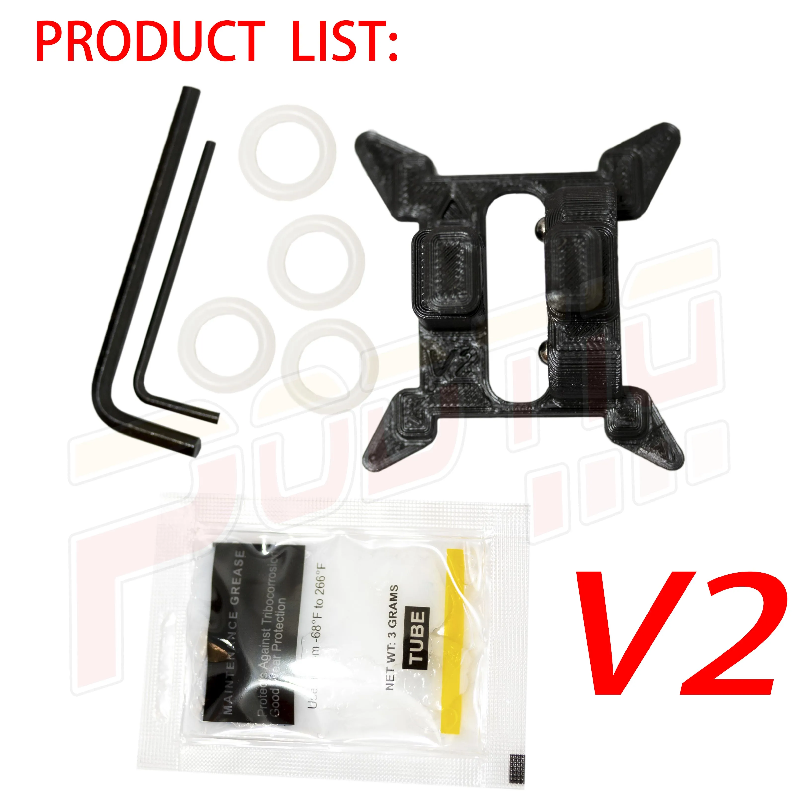Продукт хорошо вписывается в основание рычага, его легко собрать и он выполняет свою функцию. Включает в себя необходимые инструменты, несколько запасных резинок и заусенцы жира.