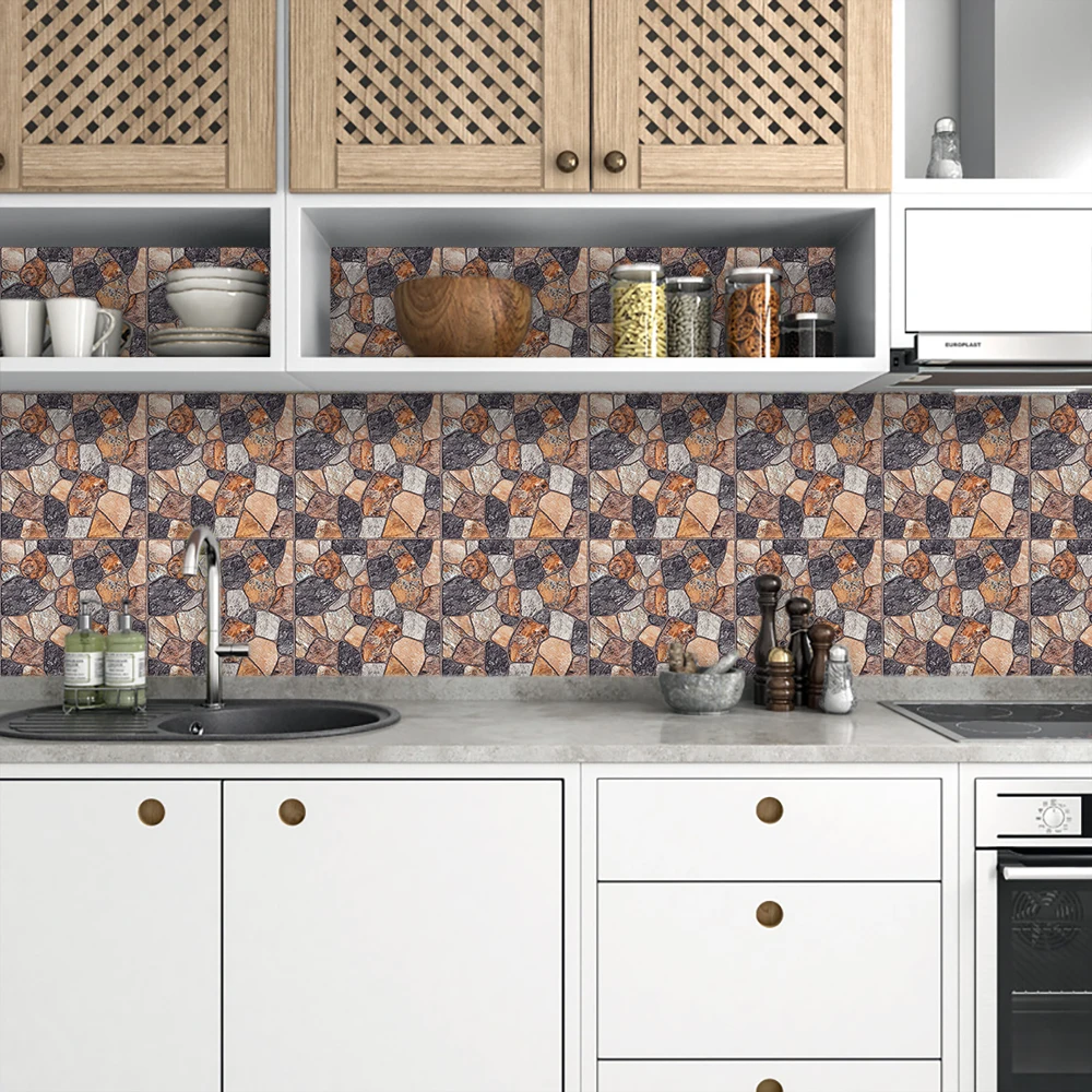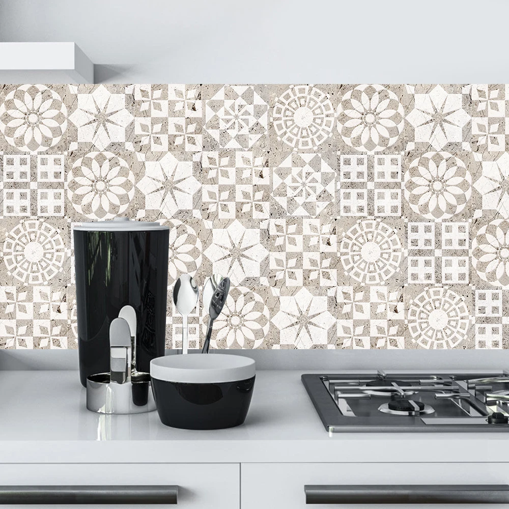 10 шт.компл. матовая мраморная плитка, наклейка на пол, обои для обновления кухни, ванной, дома, Нескользящие бежевые наклейки на стену