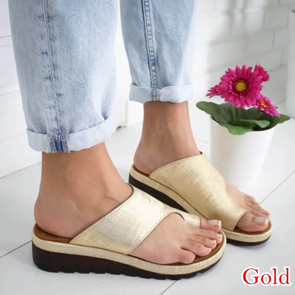 Сандалии ортопедические женские на плоской платформе, удобные босоножки с коррекцией большого пальца стопы, коррекция деформации большого пальца, однотонная обувь