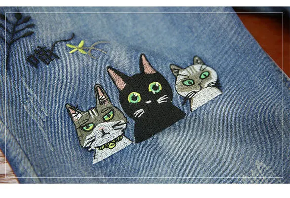 Джинсы вымыты, но еще не пробовали, короткие джинсы с вышивкой, как показано на фото.