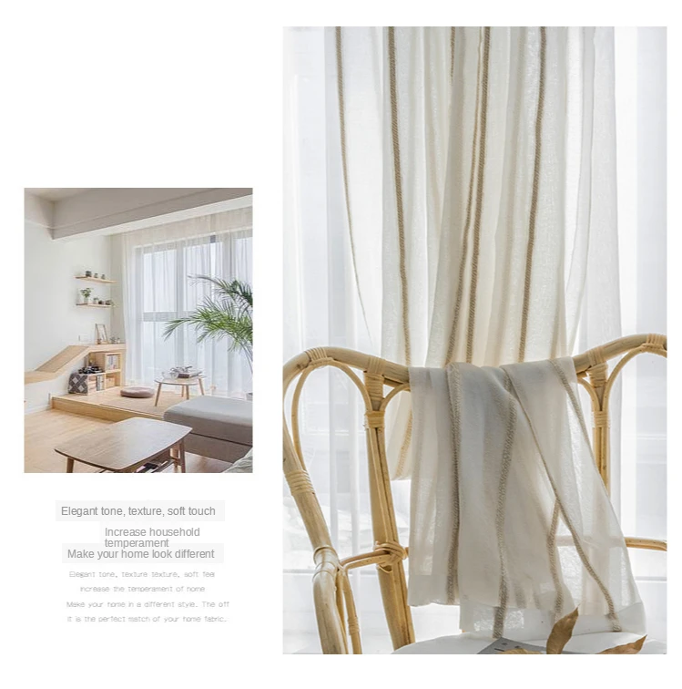 Полосатые льняные шторы в японском стиле, занавески в полоску для гостиной, кухни, спальни, гостиной