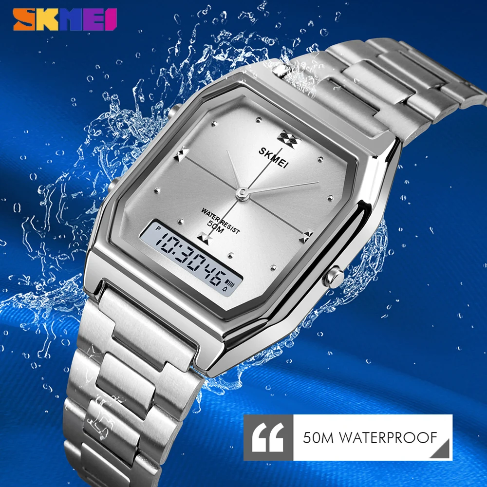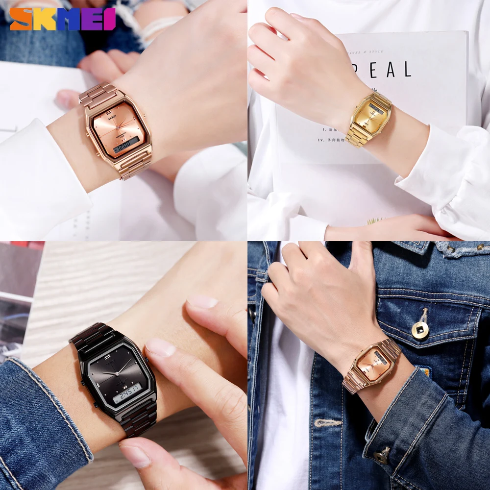 SKMEI Женские Мужские кварцевые цифровые часы электронные серебряные женские наручные часы из нержавеющей стали водонепроницаемые тонкие женские мужские часы
