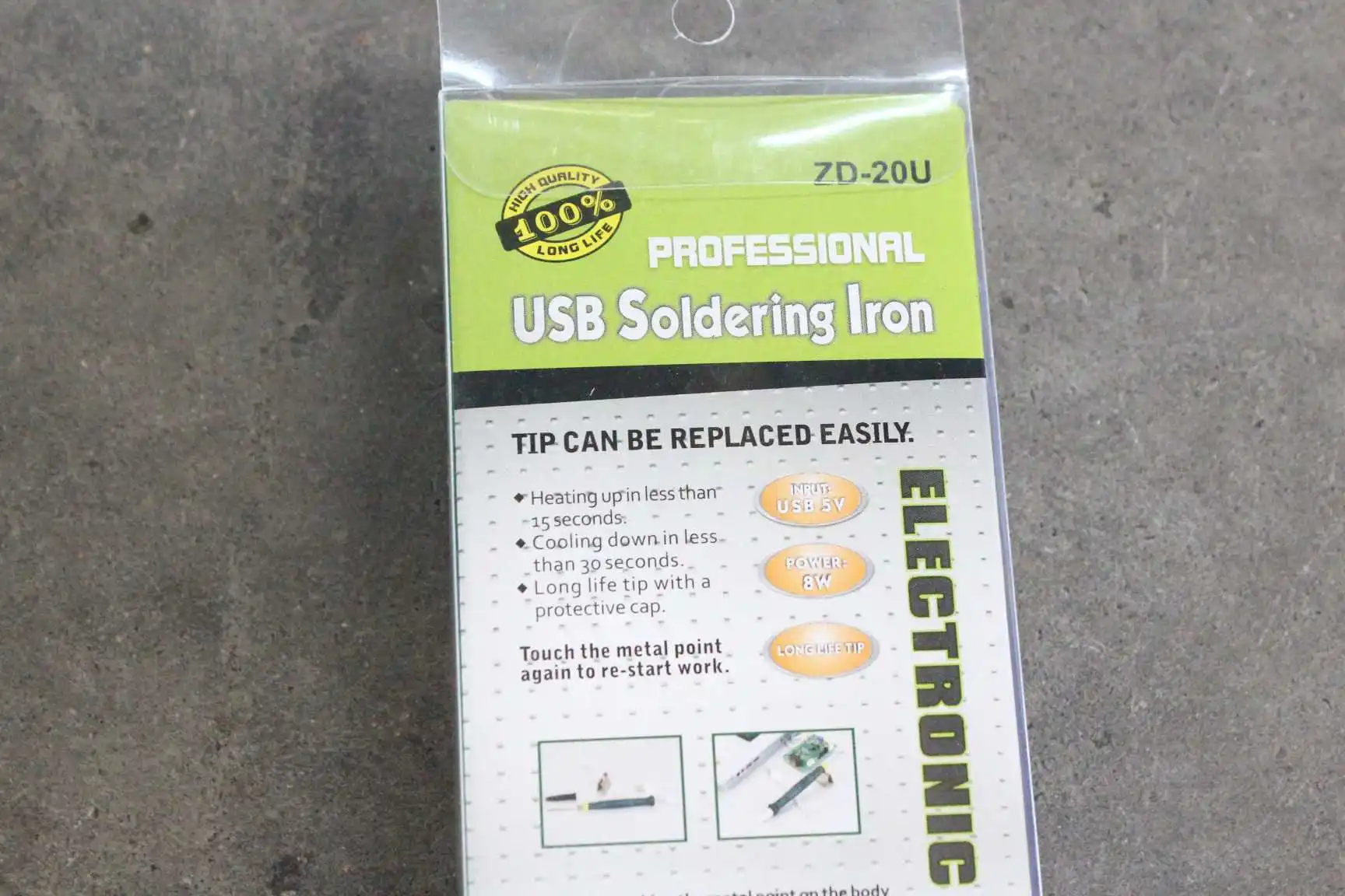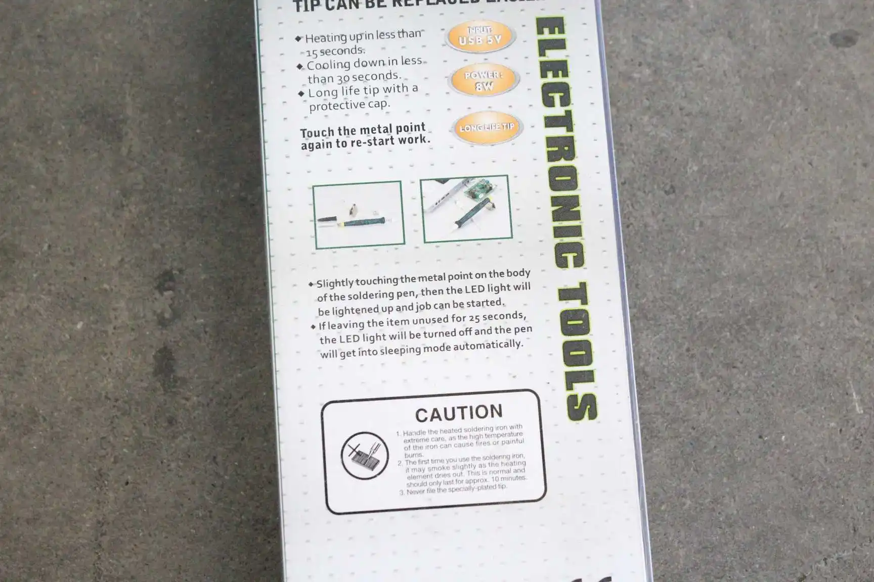 Особенности:Этот компактный, полностью работающий паяльник с питанием от USB идеально подходит для любителей.Быстрое нагревание и охлаждение означает, что вы можете работать эффективно и быстро.Небольшой наконечник делает его идеальным для работы SMD и других небольших паяльных работ.Метод:1. Откройте Железный череп бургера, а не влево, оттяните, можно использовать непосредственно. Если слева повернуть винтовой ключ к Gary, железная головка не подключается, не может работать! Затем закрутите правый винт прямо под ним.2. Переключатель продукта-это индукционный переключатель человеческого тела, рука удерживает ручку 5 секунд, чтобы начать нагреваться, после того как она покинет ручку, ручка замедлится.3. Источник питания лучше всего преобразовать источник питания USB, источник питания компьютера или более десяти тысяч мА мобильный источник питания. Небольшая емкость мобильного питания не будет двигаться.Описание:Долговечный наконечник, Защитный колпачок для наконечника.Мгновенный триггер включает блок питания.Эргономичная ручка и легкий дизайн делают его простым в использовании.Характеристики:Время быстрого нагрева:<15 секундБыстрое Охлаждение:<30 секундФункции: Автоматическое отключение 25 секунд холостого хода. Светодиодный индикатор.Размеры: ручка 11,5 смОбщая длина: 16 смСтабильность температуры: быстраяМаксимальная температура: 480 °Мощность: 5 В постоянного тока/8 ВтМатериал: пластик, металлЦвет: черныйПосылка включает в себя:1 паяльник1 х usb-кабель питанияМеталлическая подставка-1 шт.1 x крышка наконечника1 x маленькая катушка припояПримечания:Этот продукт является Индукционным переключателем человеческого тела, удерживая ручку в течение 5 секунд, которая начала нагреваться, оставив ручку, она замедлится.