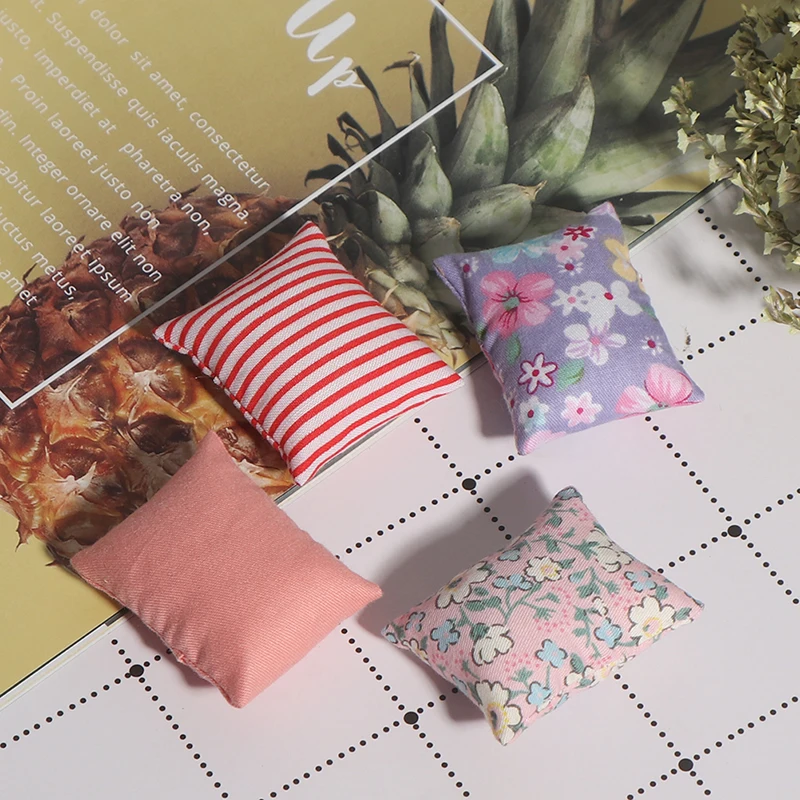 Симпатичные Подушки с цветами для дивана, кровати, кукольного домика, миниатюрная мебель для кукольного домика 112, игрушки, 2 шт.