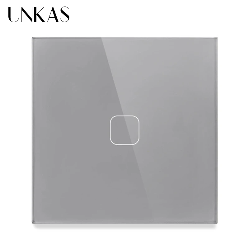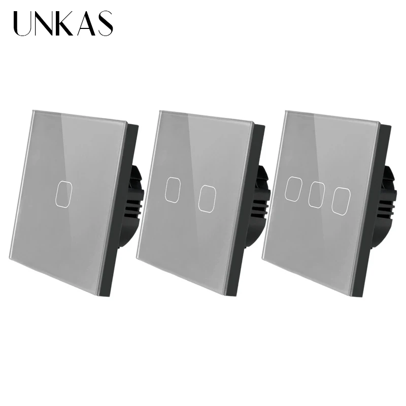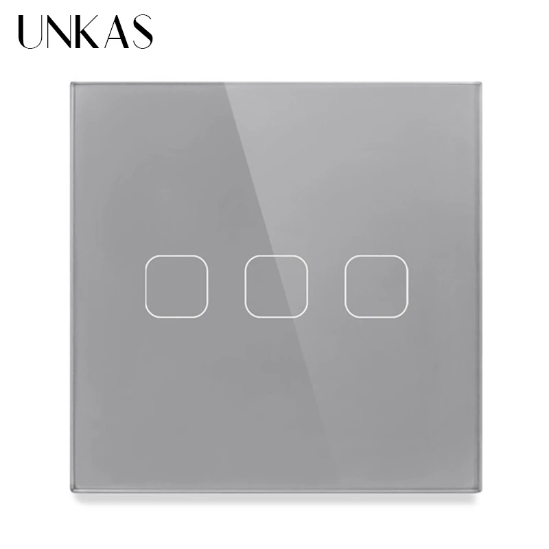 Сенсорный выключатель UNKAS, Стандартный ЕС/Великобритания 1/2/3, односторонний, серая кристальная стеклянная панель, сенсорный выключатель, настенный только сенсорный выключатель