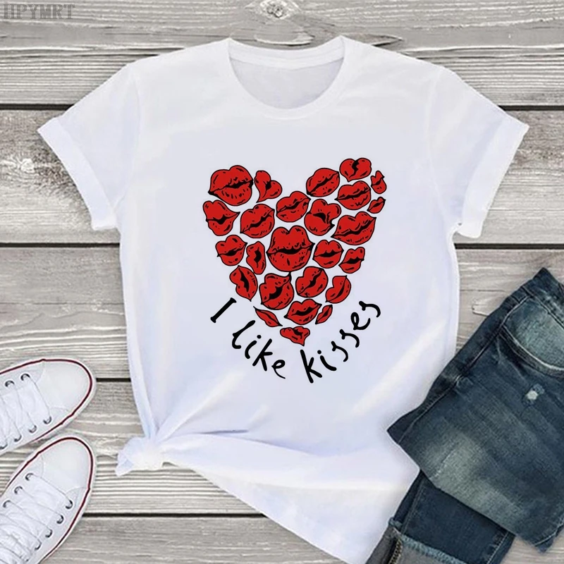 Женские топы 2020, красные футболки с принтом губ и любви, одежда с...