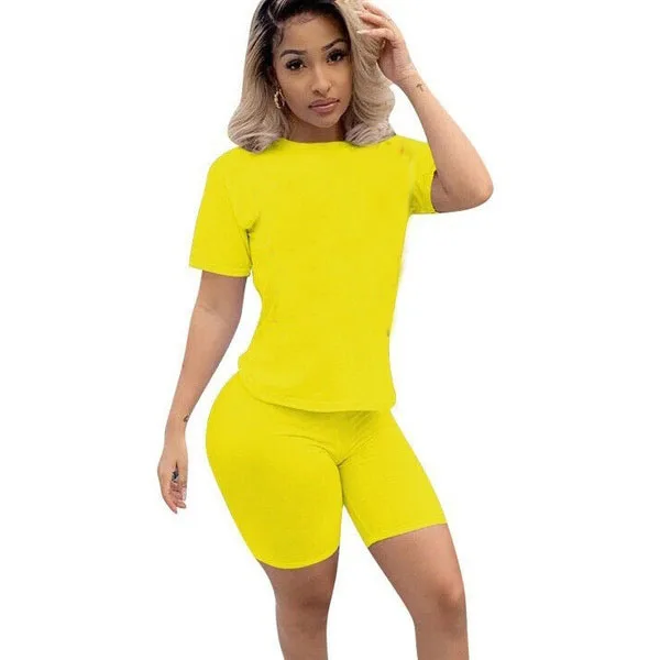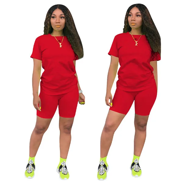 Женский спортивный костюм, Однотонная футболка с коротким рукавом и шорты, повседневный летний комплект, S-4XL