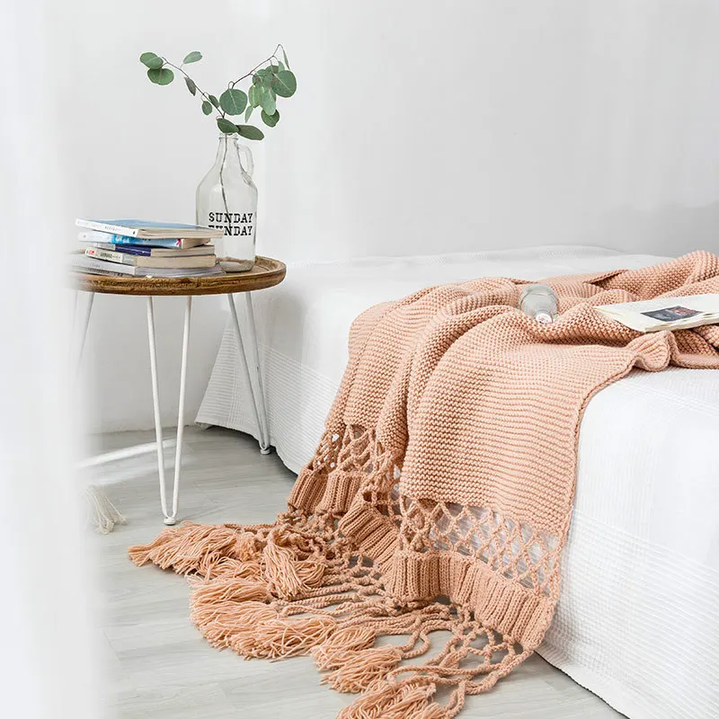 Вязаное одеяло ручной работы с кисточками покрывало домашнее постел...