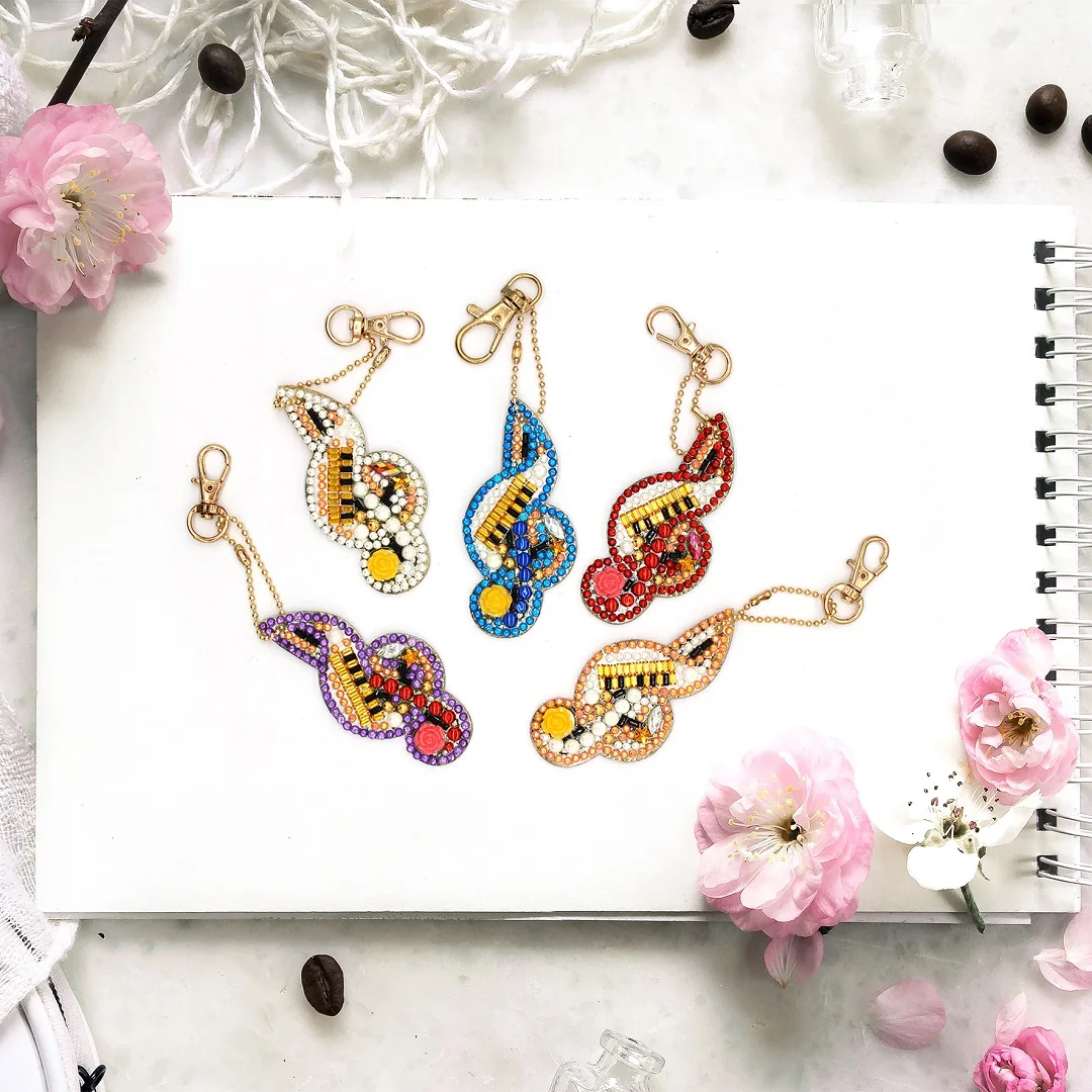 Музыкальная нота алмазов картина Наборы брелок со стразами сумка с мозаичным рисунком брелок подвесной орнамент дети рисунок с бриллиантами