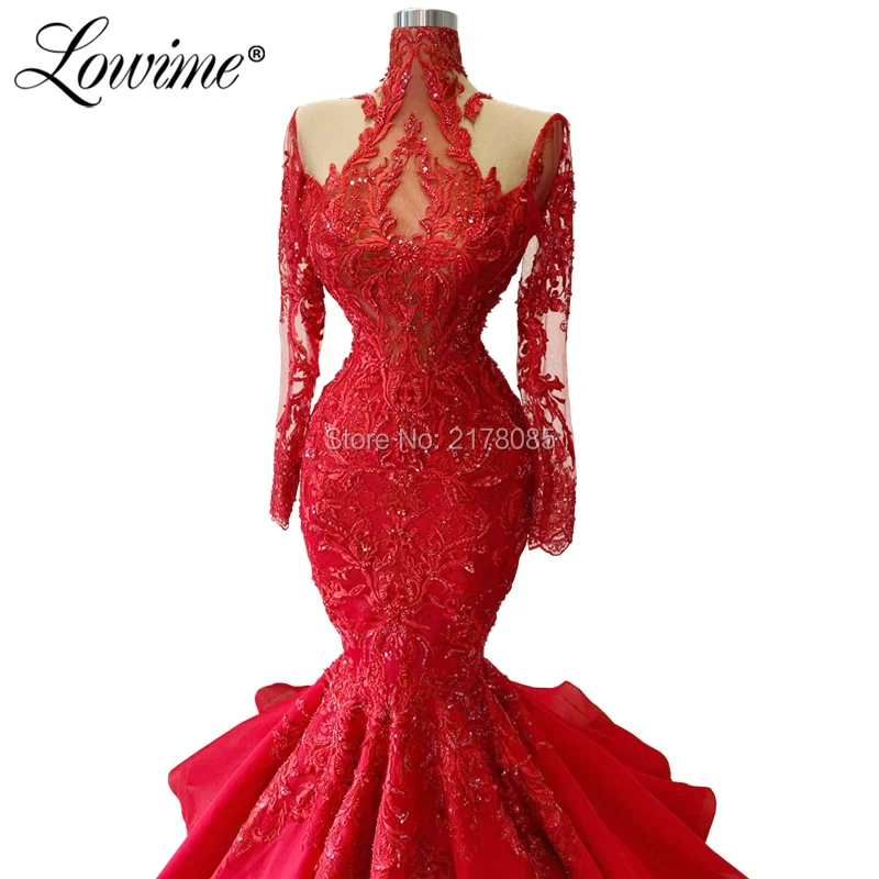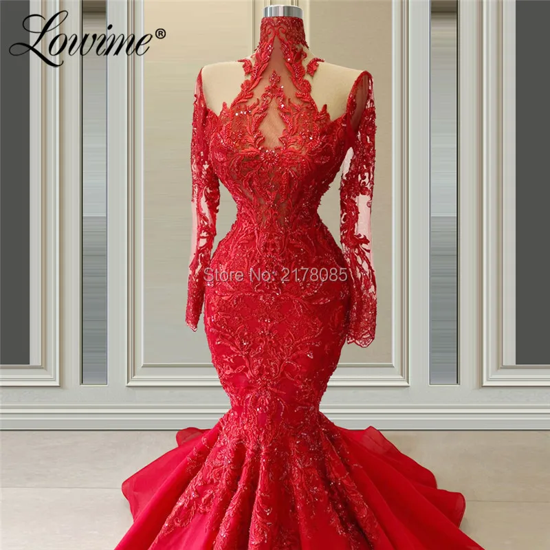 Вечерние платья-русалки с красной аппликацией, вечернее платье с высоким воротником и длинными рукавами, украшенное бусинами, для свадебной вечеринки, Средний Восток, Дубай, платья для выпускного вечера, платья, халаты, 2020