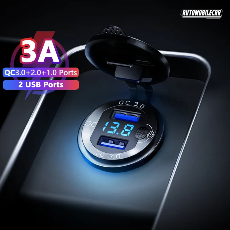 Алюминиевая водонепроницаемая двойная розетка для быстрой зарядки 12 В, 24 В, 18 Вт, QC3.0, USB, со светодиодный ным вольтметром, выключателем, для автомобиля, морского грузовика