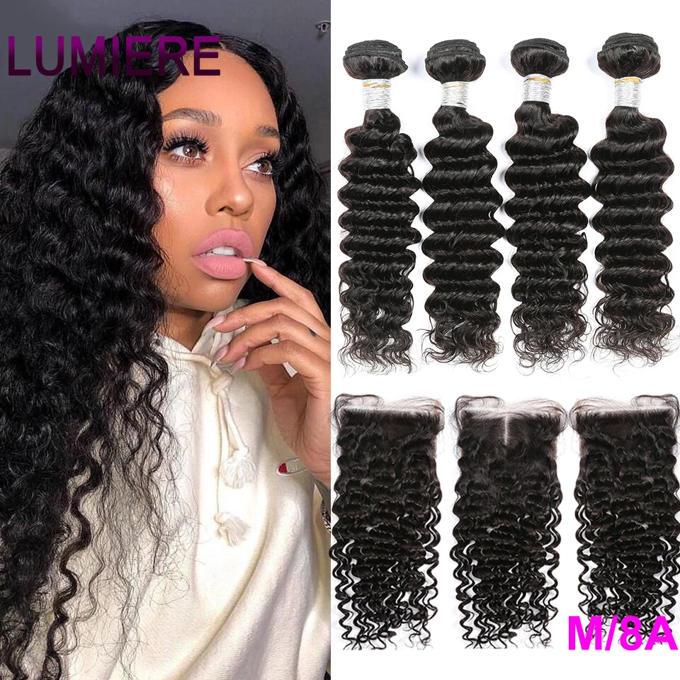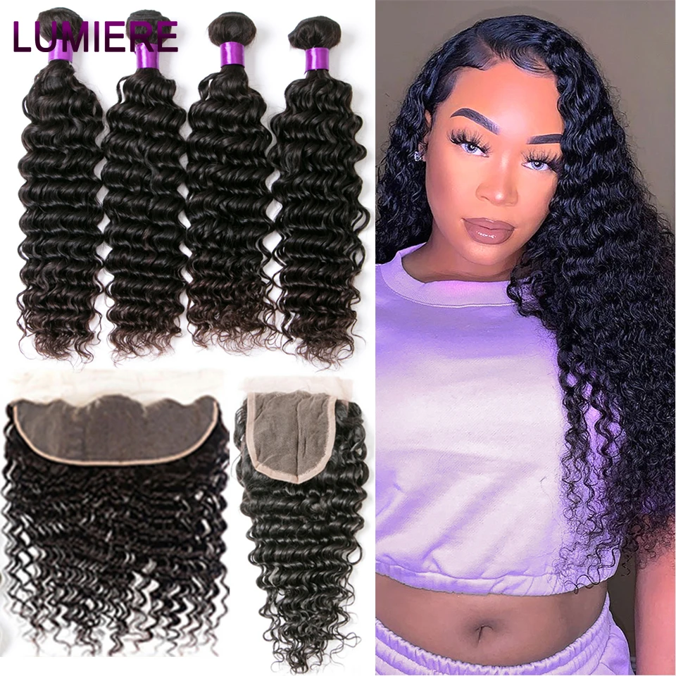 Пряди с глубокой волной и фронтальной бразильской шерстью, пряди для наращивания, 34 человеческие волосы, пряди с застежкой, Светящиеся Волосы Remy