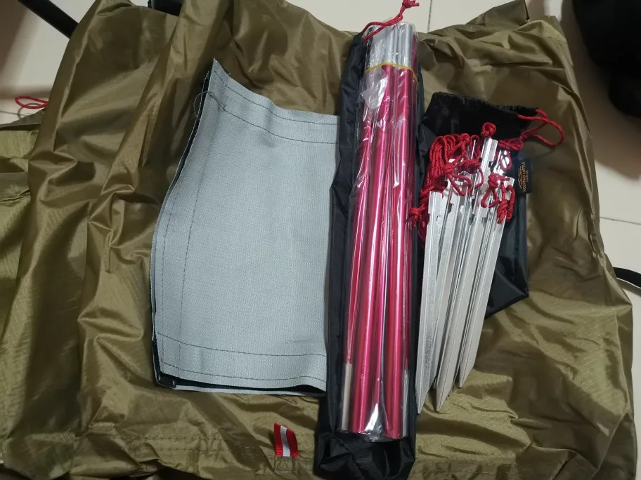Доставка товара была неожиданно быстрой. Все сделано хорошего качества. Швы водонепроницаемые, а колышки для палаток очень легкие и прочные