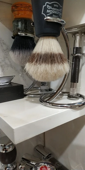 Хорошая подставка, но не подходит для помазков с узкой ручкой, они в нее проваливаются. Внутренний диаметр держателя - 34 мм.