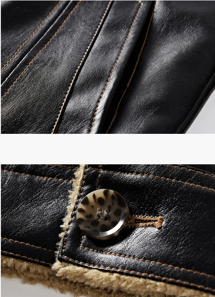 Мужские кожаные куртки, Зимние флисовые Толстые мужские зимние паль...