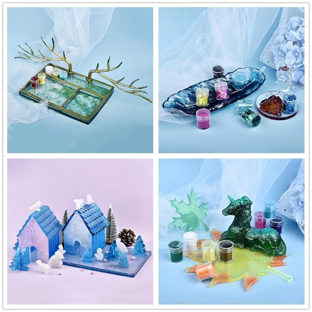 4 флакона смолы с блестящим наполнителем, блёстки шестиугольные блесток, рождественский стиль, УФ-отверждаемая эпоксидная смола пигмент для украшения ногтей