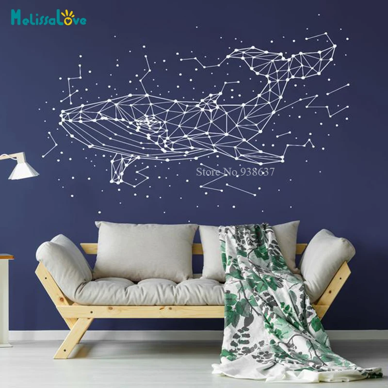 Настенная Наклейка большого размера с изображением китов и звезд, неба, неба, офисный декор, гостиная, виниловые художественные фрески, самоклеящиеся BB491