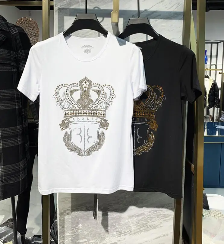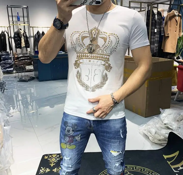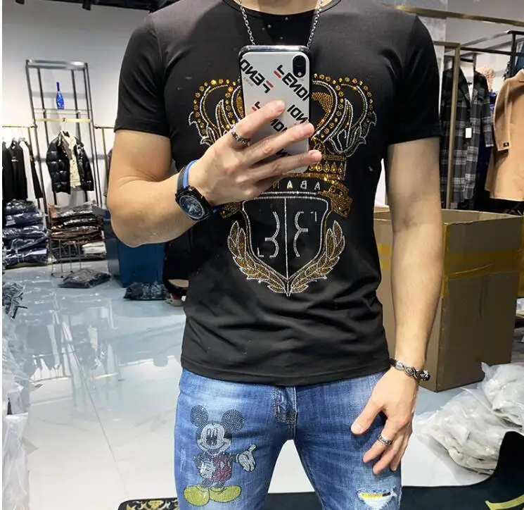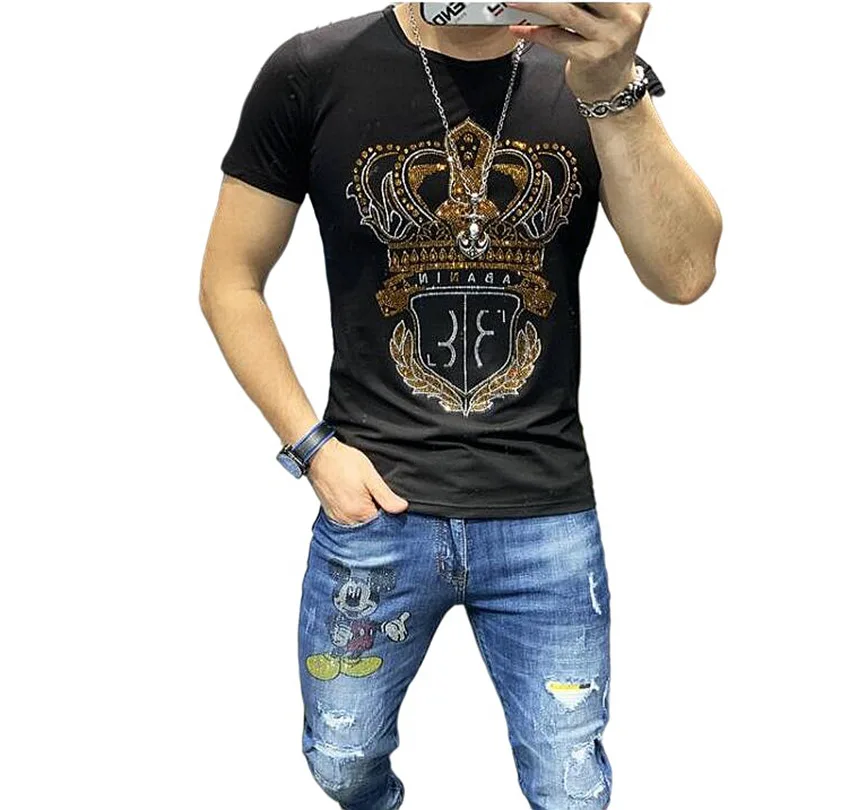 Футболки Стразы с аниме, Высококачественная уличная одежда, мужская модная популярная одежда с коротким рукавом и круглым вырезом из хлопка