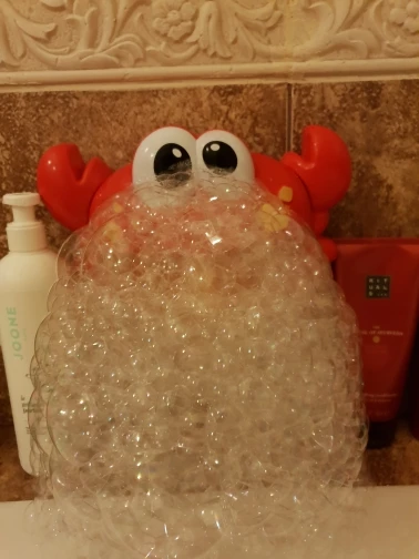 Доставка 1 месяц, пробовал сегодня и детям очень понравилось. Краб создает пузыри и поет :)